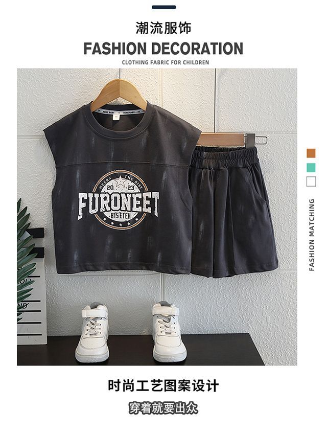 남자들의 여름 세트 2024 새로운 스타일 어린이 얇은 민소매 옷 아기 반바지 조끼 투피스 유행 세트스토어 가기