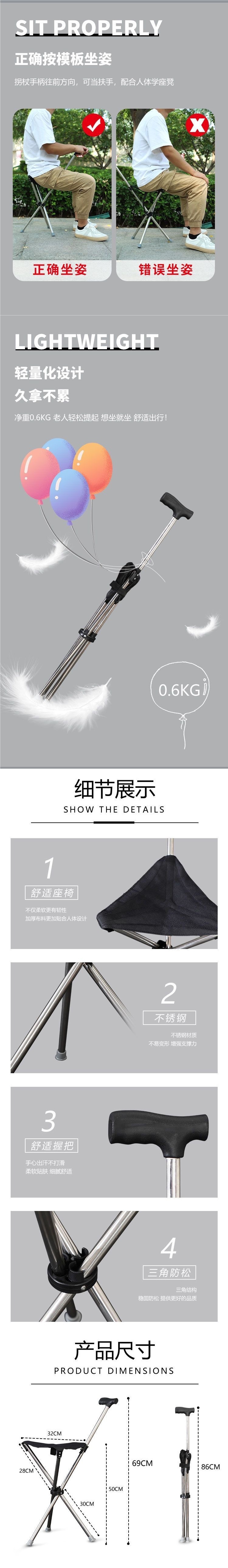 노인을 위한 야외 접이식 지팡이 의자, 보행 보조 지팡이 의자, 경량 등산 지팡이, 지팡이 의자스토어 가기