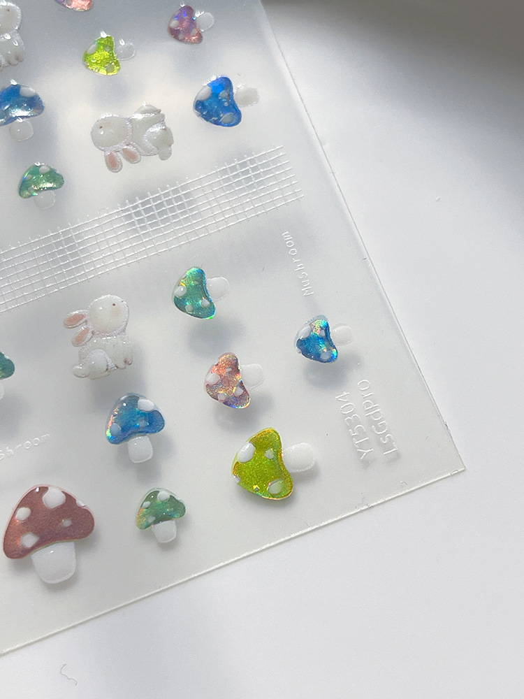 YITU 개미 그림 레이저 젤리 버섯 네일 아트 스티커 귀여운 만화 간단한 달콤한 스타일 장식 스티커 YT5304스토어 가기