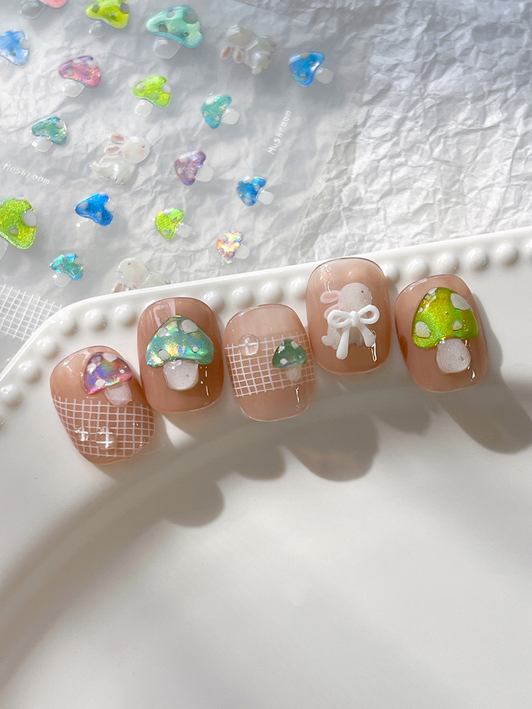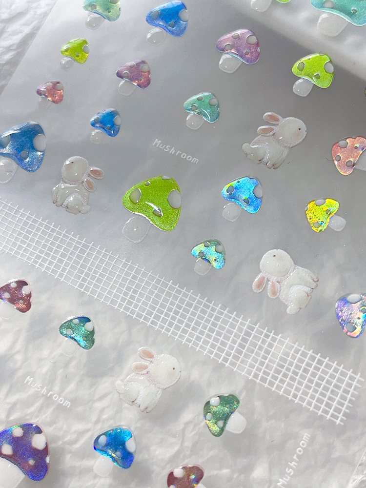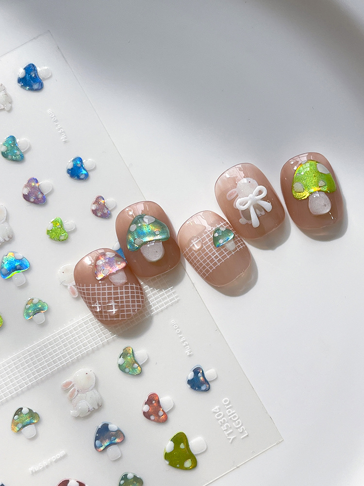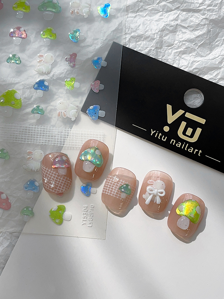 YITU 개미 그림 레이저 젤리 버섯 네일 아트 스티커 귀여운 만화 간단한 달콤한 스타일 장식 스티커 YT5304