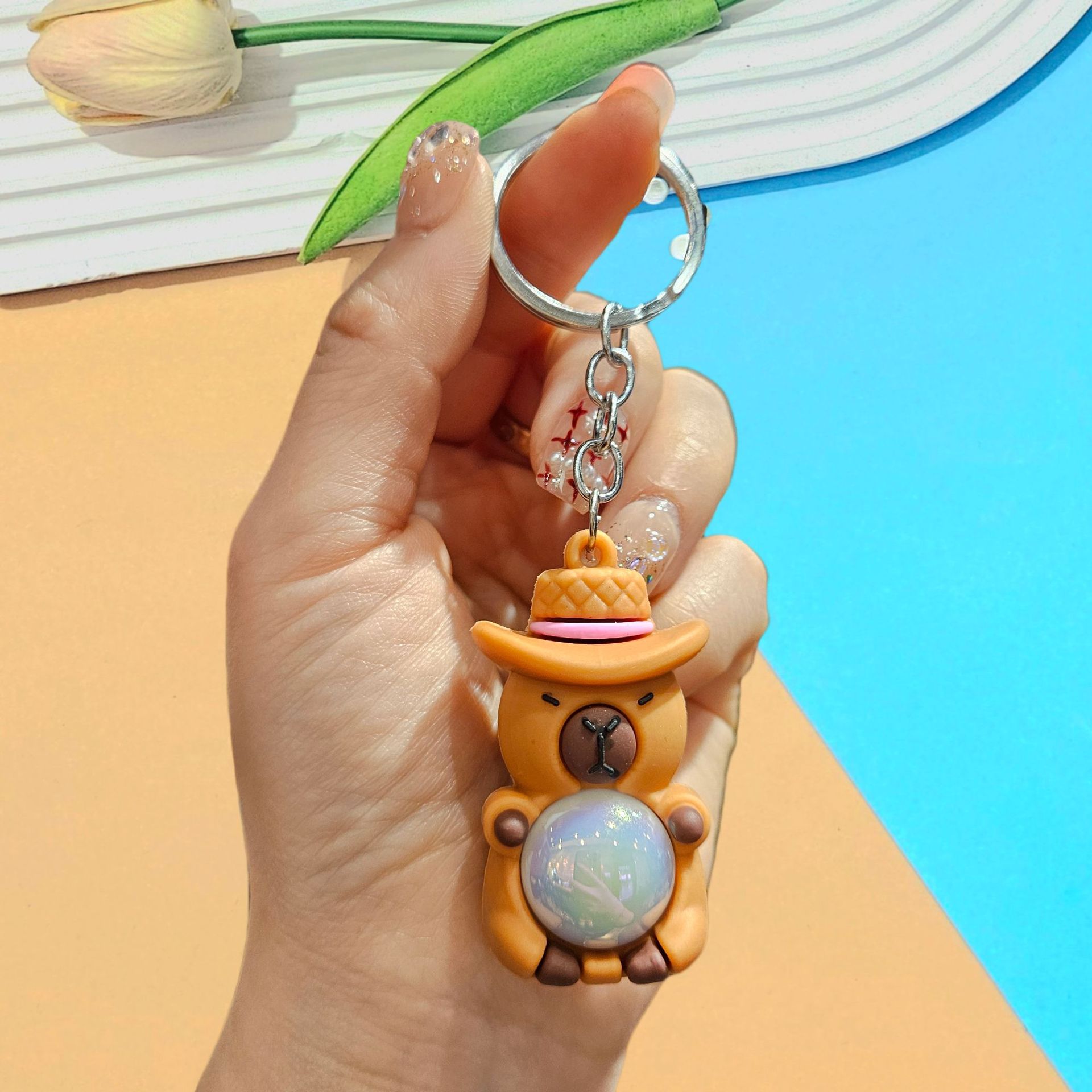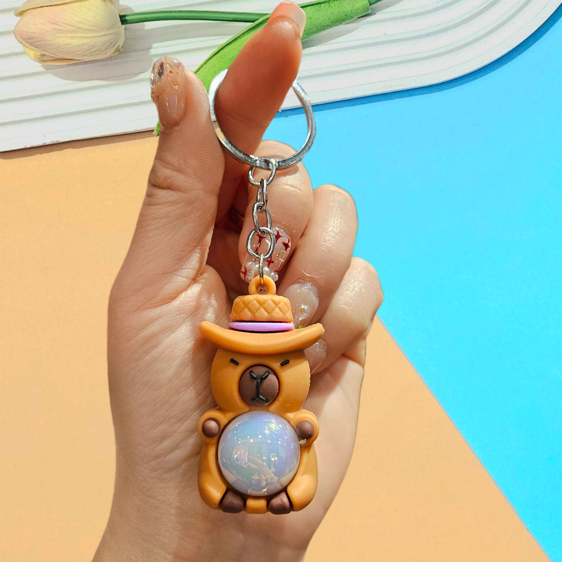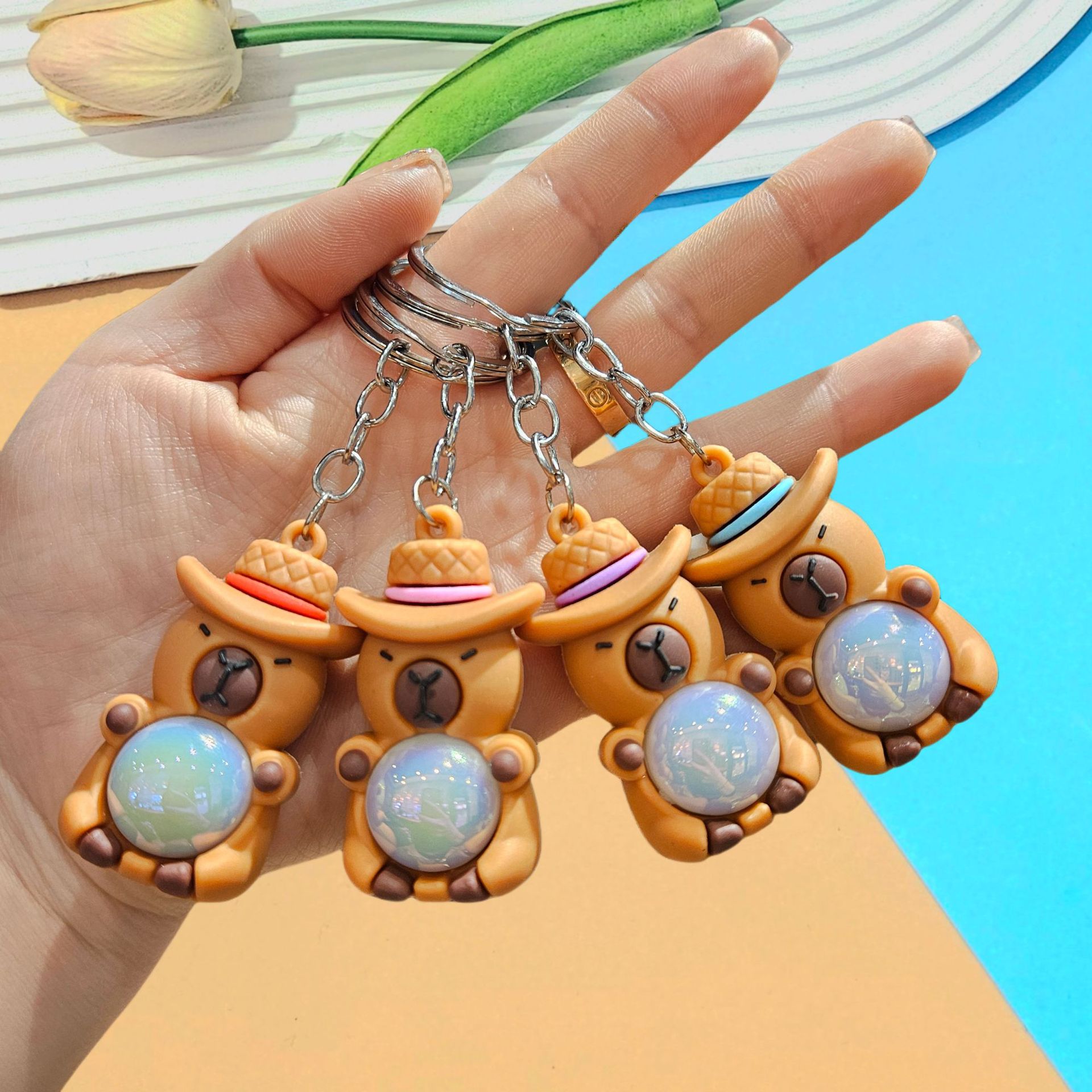 새로운 창조적 인 깜박이는 가벼운 카피 발라 키 체인 펜던트 자동차 가방 키 체인 매달려 장식 푸시 블라인드 박스 선물스토어 가기