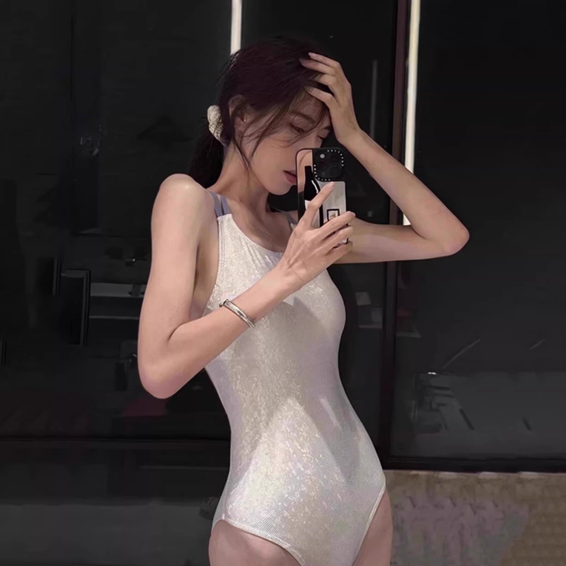수영복 여성 2025 년 새 폭발 하이 엔드 감각 결합 된 레이싱 여성 수영복 프로 스포츠 화이트 달빛