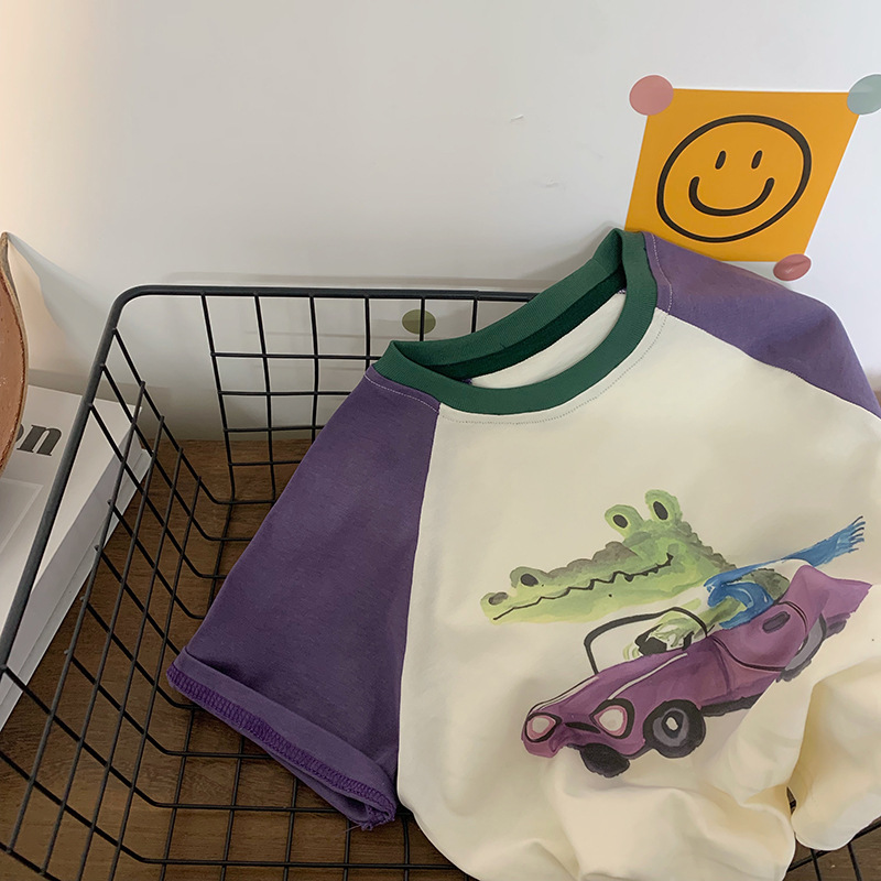 아동복 보이즈 중년 색조 만화 반팔 티셔츠 코튼 올매치 서양식 루즈드 여름 패셔너블 쿨 핸즈섬