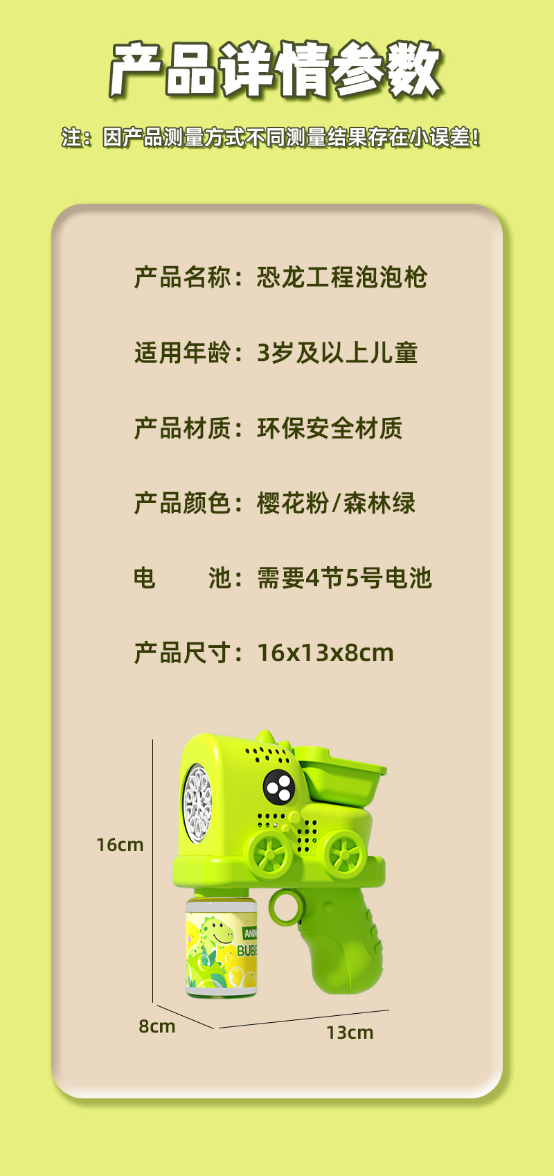 • 889-31-[공룡공학 버블건]-녹색 + AA건전지 4개