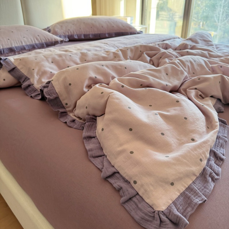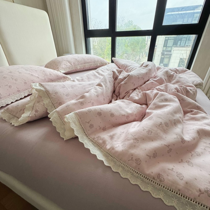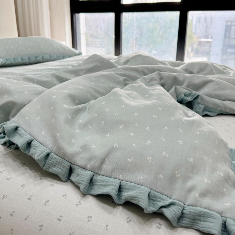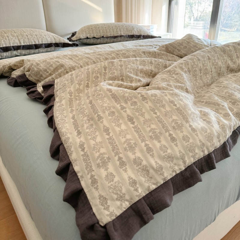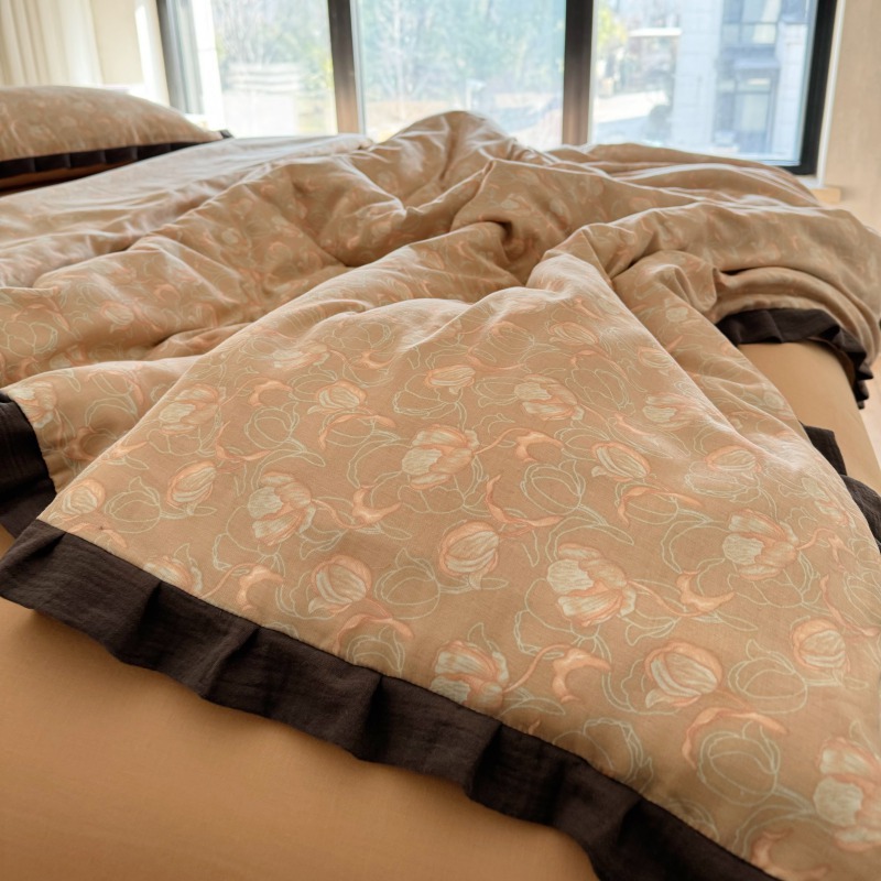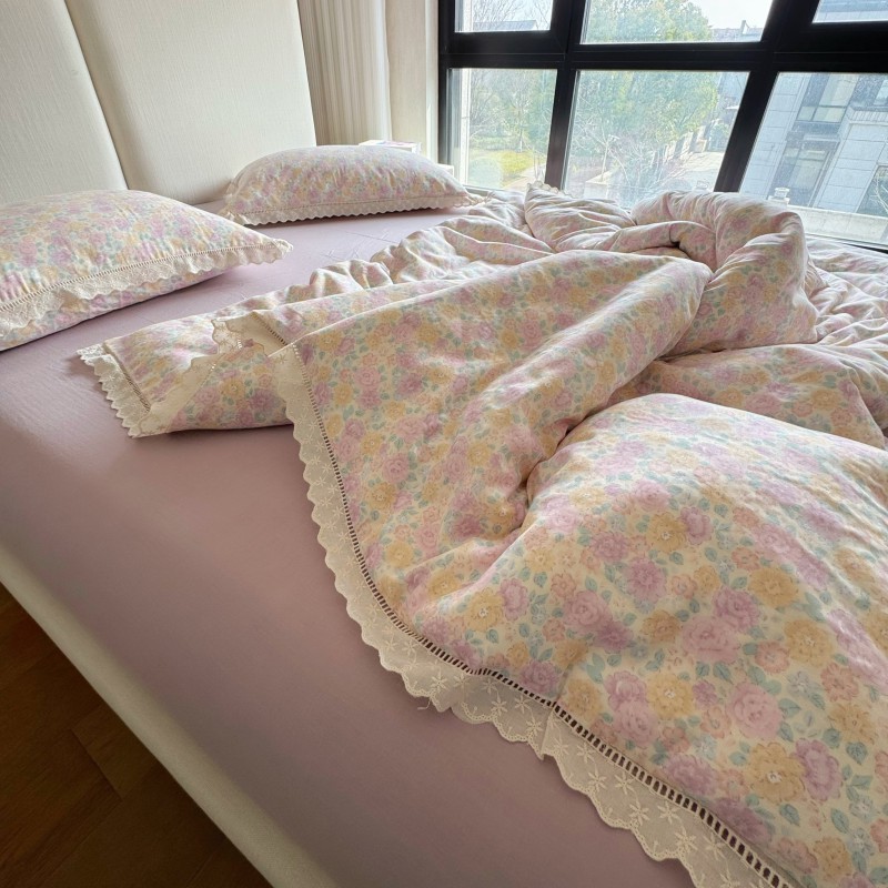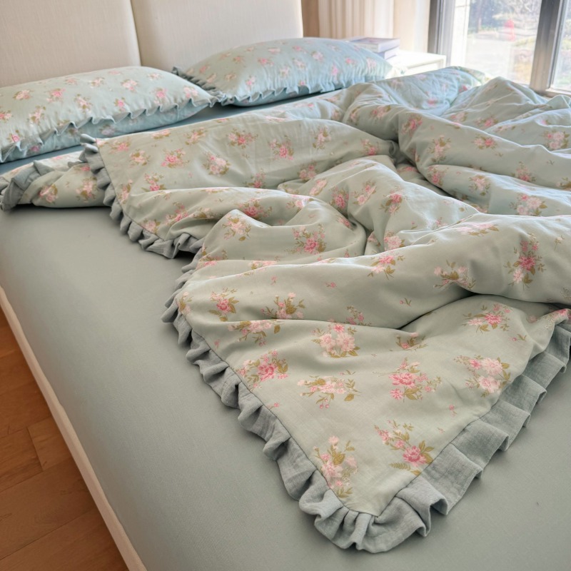 작은 빨간 책 TikTok 폭발 면 두 배 층 원사 부드러운 벌거 벗은 잠자는 4 피스 세트 사계절 유니버설 플로랄 코튼 퀼트 커버