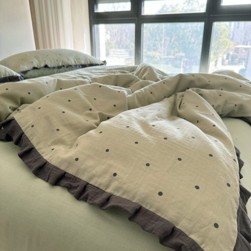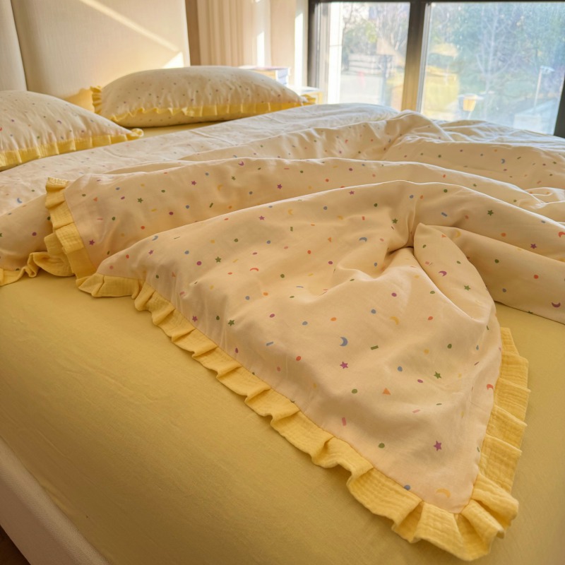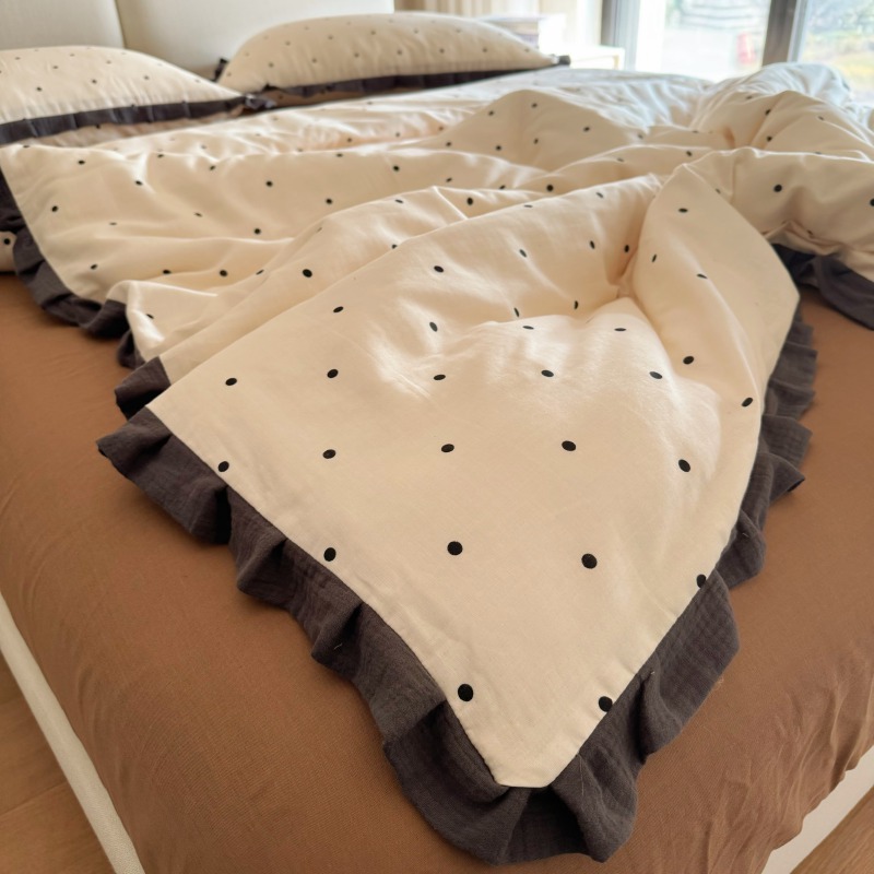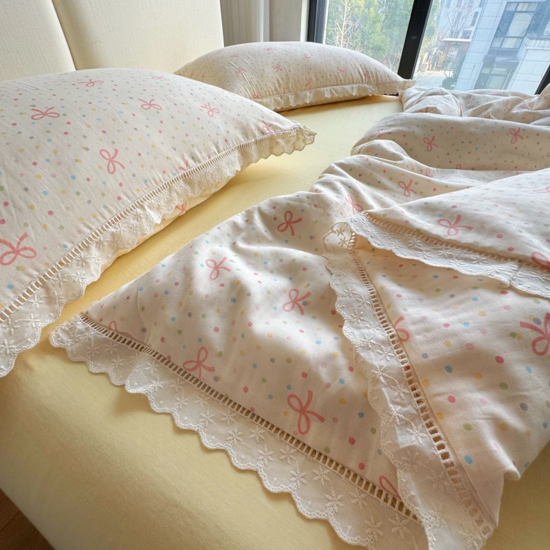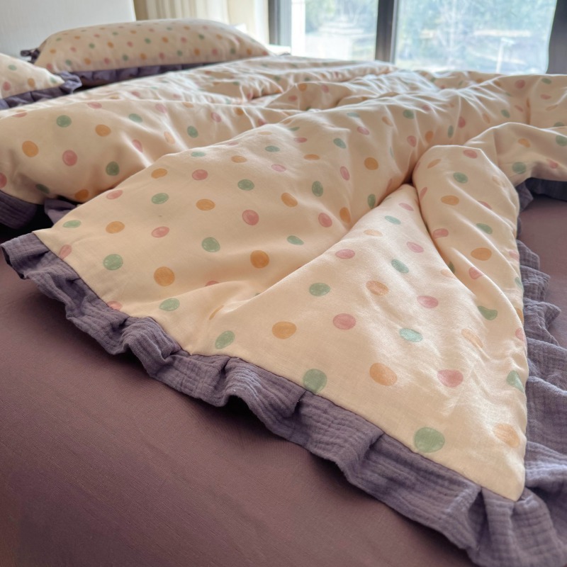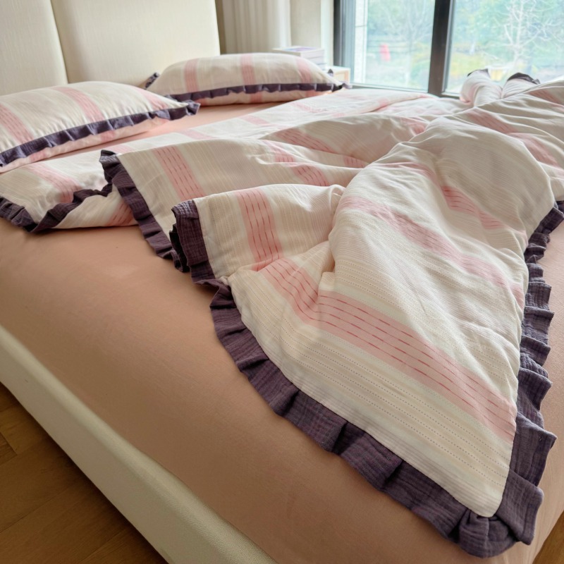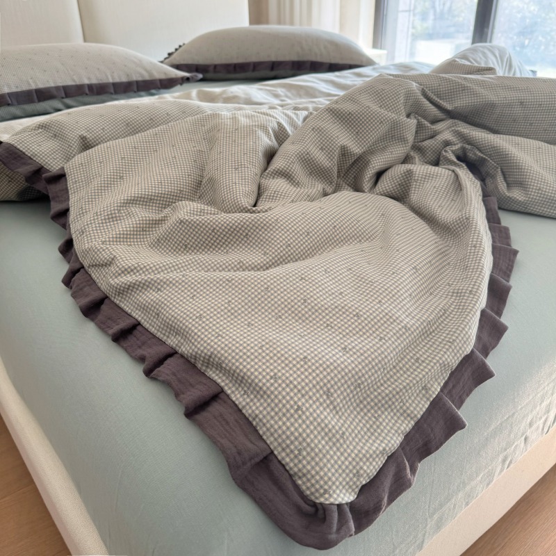 작은 빨간 책 TikTok 폭발 면 두 배 층 원사 부드러운 벌거 벗은 잠자는 4 피스 세트 사계절 유니버설 플로랄 코튼 퀼트 커버