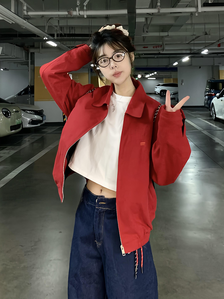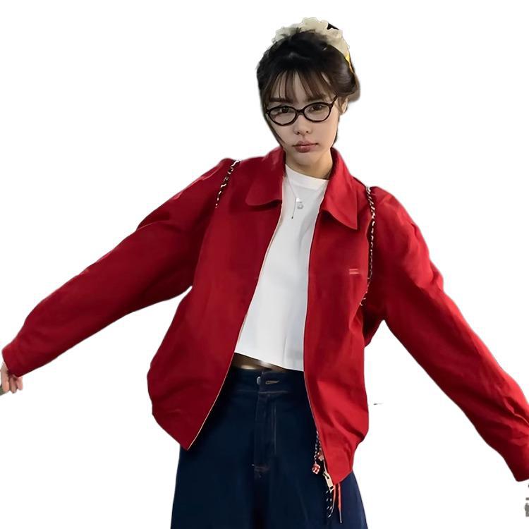 레드 해링턴 자켓 여자 봄 2025 새로운 미국 복고풍 기본 통근 남자 및 여자 올 매치 재킷 트렌디