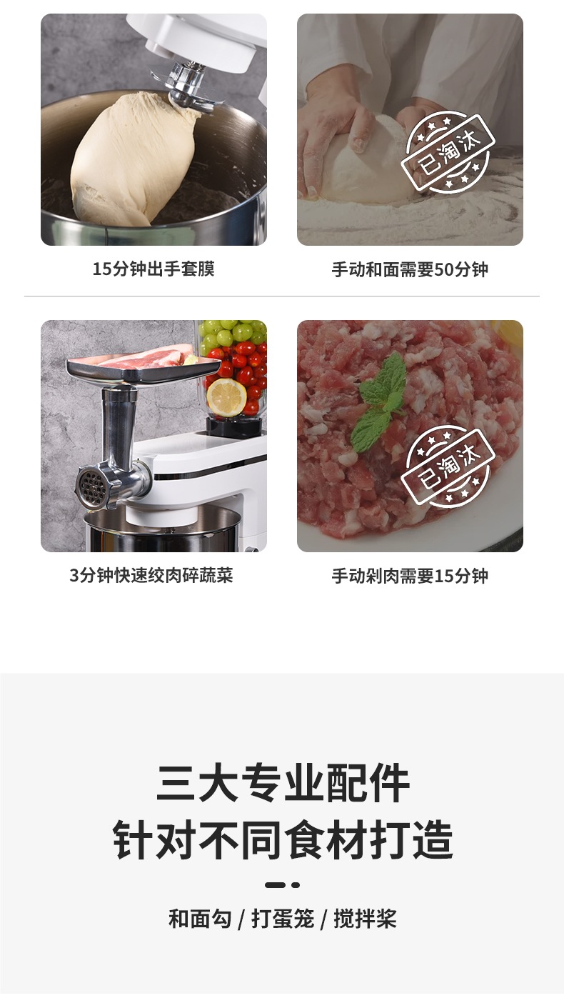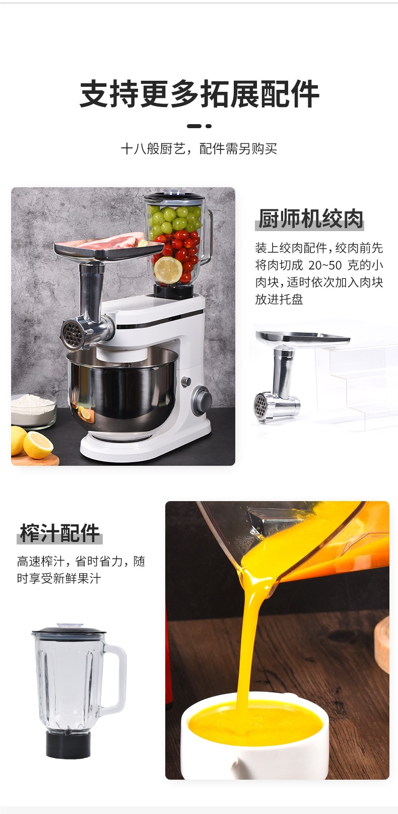 • 8 L-1800W 요리사 기계 + 착즙 및 다진 고기 액세서리 [대용량]