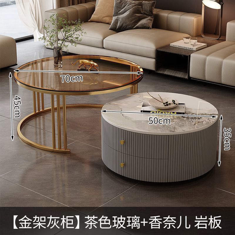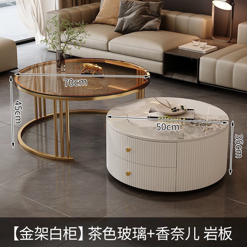 커피 테이블 라이트 럭셔리 간단한 현대 거실 새로운 인터넷 유명한 가정용 작은 아파트 북유럽 대리석 바위 접시 라운드 티 테이블