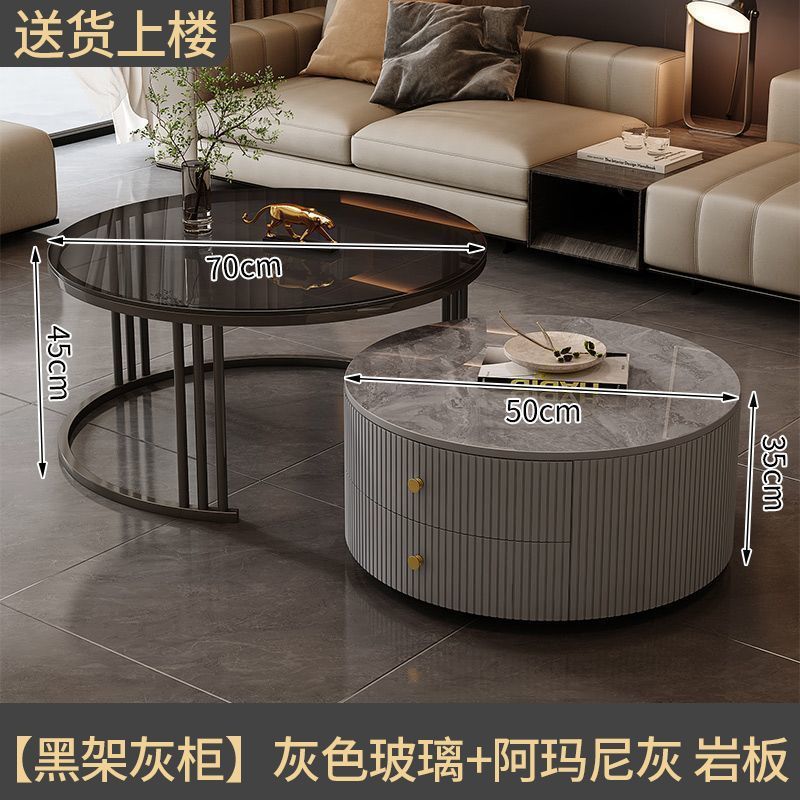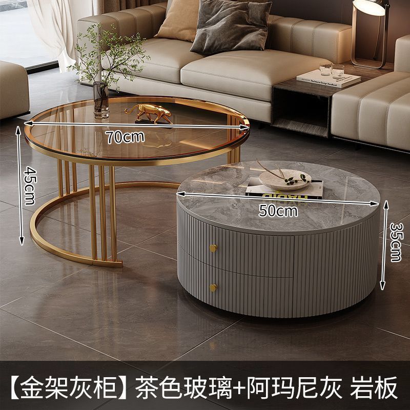 커피 테이블 라이트 럭셔리 간단한 현대 거실 새로운 인터넷 유명한 가정용 작은 아파트 북유럽 대리석 바위 접시 라운드 티 테이블스토어 가기
