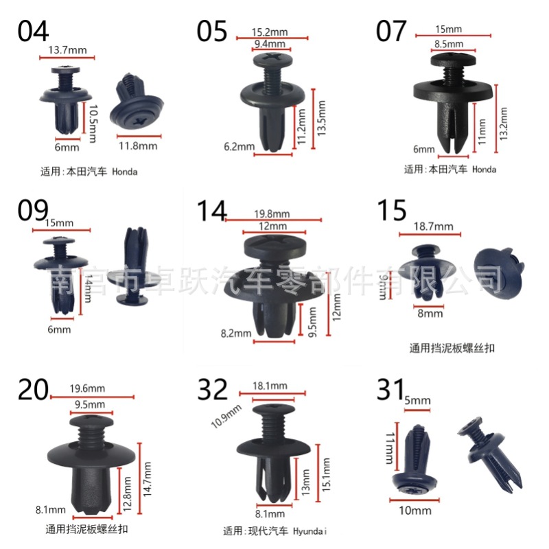 자동차 패스너, 펜더 라이닝, 트렁크 패스너, 펜더 확장 나사 고정 클립