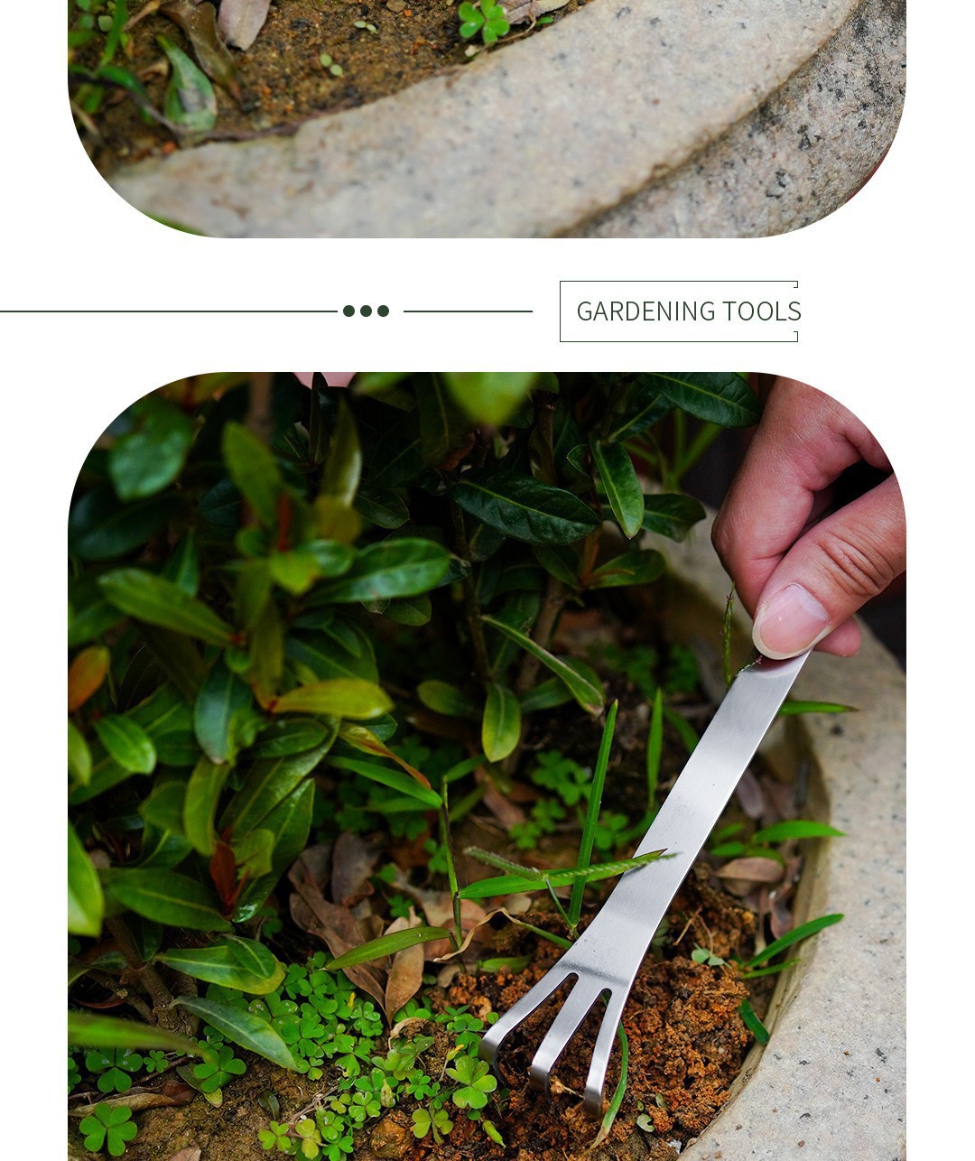 가정용 스테인레스 스틸 손 갈퀴, 이중 헤드 토양 압착 칼, 새싹 따기, 수제 분재 제작 도구, 흙 풀기, 새로운 분재 갈퀴