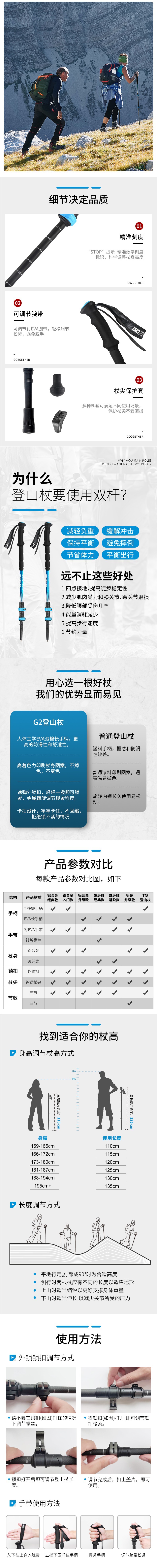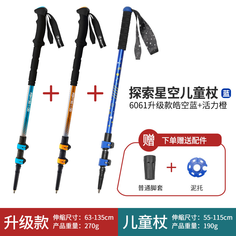 탄소 섬유 등산 및 하이킹 알루미늄 합금 텔레스코픽 지팡이 야외 스포츠 휴대용 지팡이 Haokong 파란색 짧은 손잡이스토어 가기