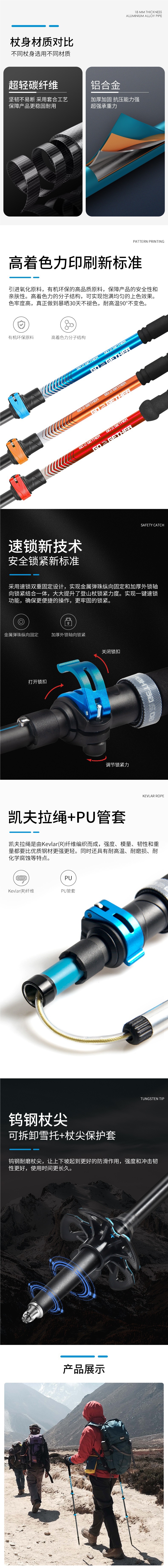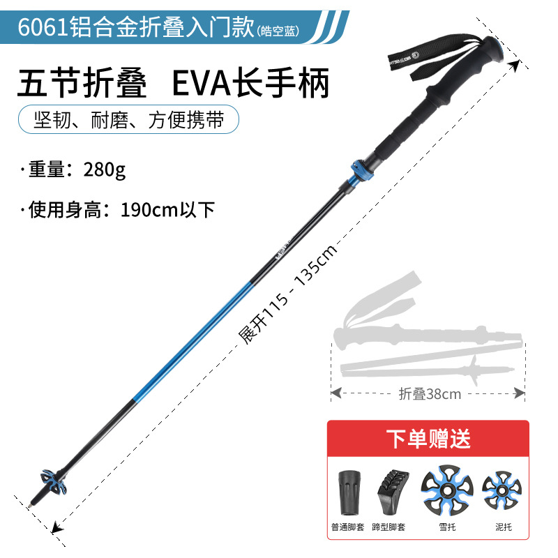 탄소 섬유 등산 및 하이킹 알루미늄 합금 텔레스코픽 지팡이 야외 스포츠 휴대용 지팡이 Haokong 파란색 짧은 손잡이