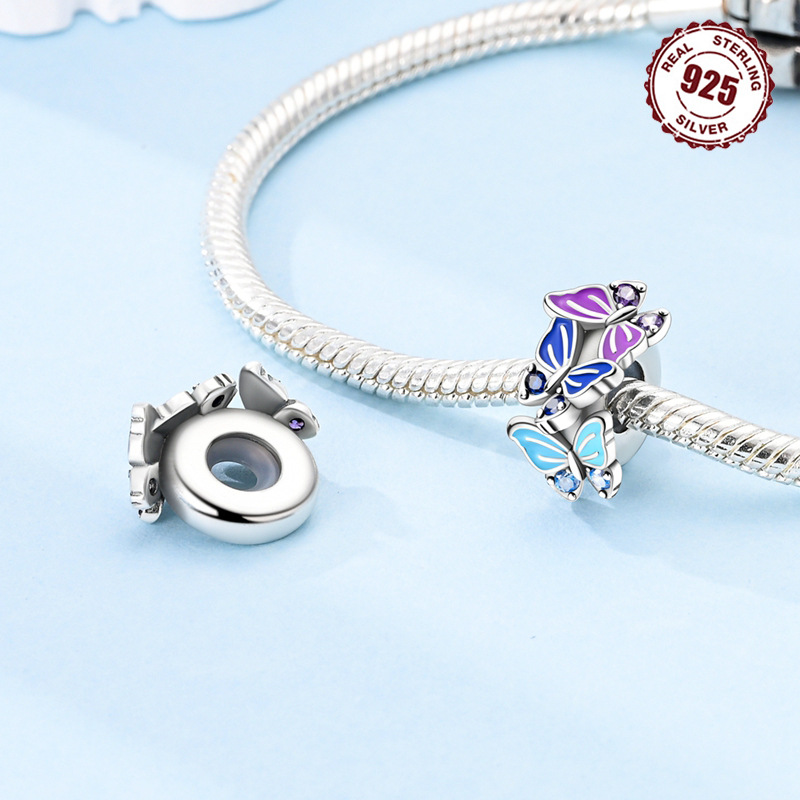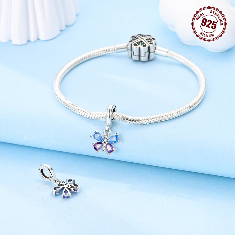 원래 925 스털링 실버 매력 식물 나비 튤립 해바라기 벚꽃 구슬 매달려 DIY 보석 액세서리 팔찌스토어 가기