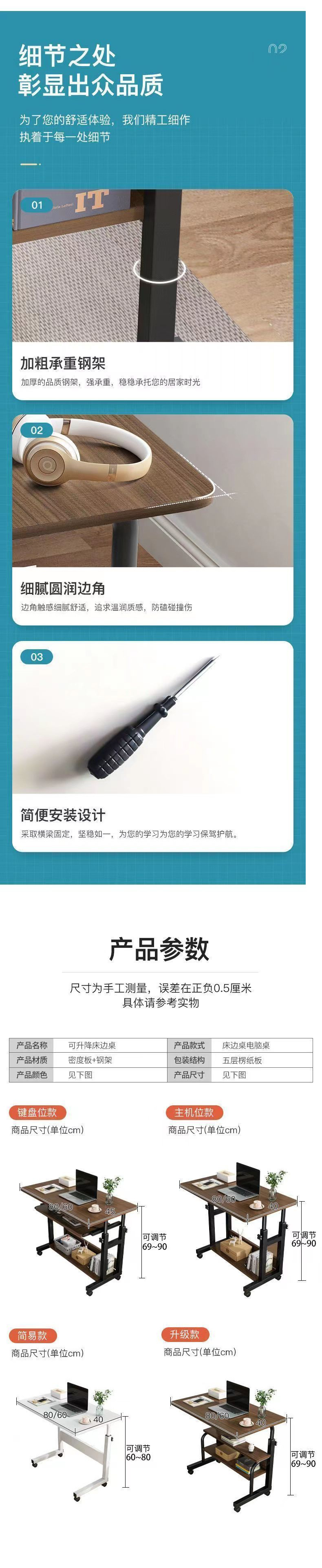 침대 옆 테이블 이동식 간이 테이블 침실 임대 주택 가정용 노트북 테이블 침대 학습 테이블 임대