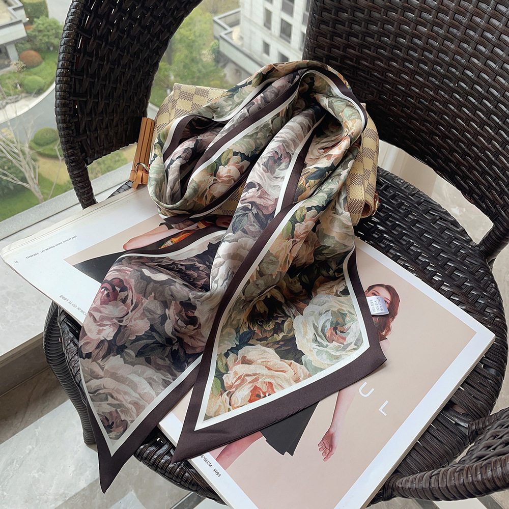 스타 실크 스카프 롱 더블 레이어 리본 스카프 여자 봄과 여름 올 매치 뽕나무 실크 스카프 한국식 멀티 컬러 스카프