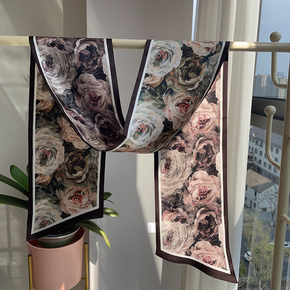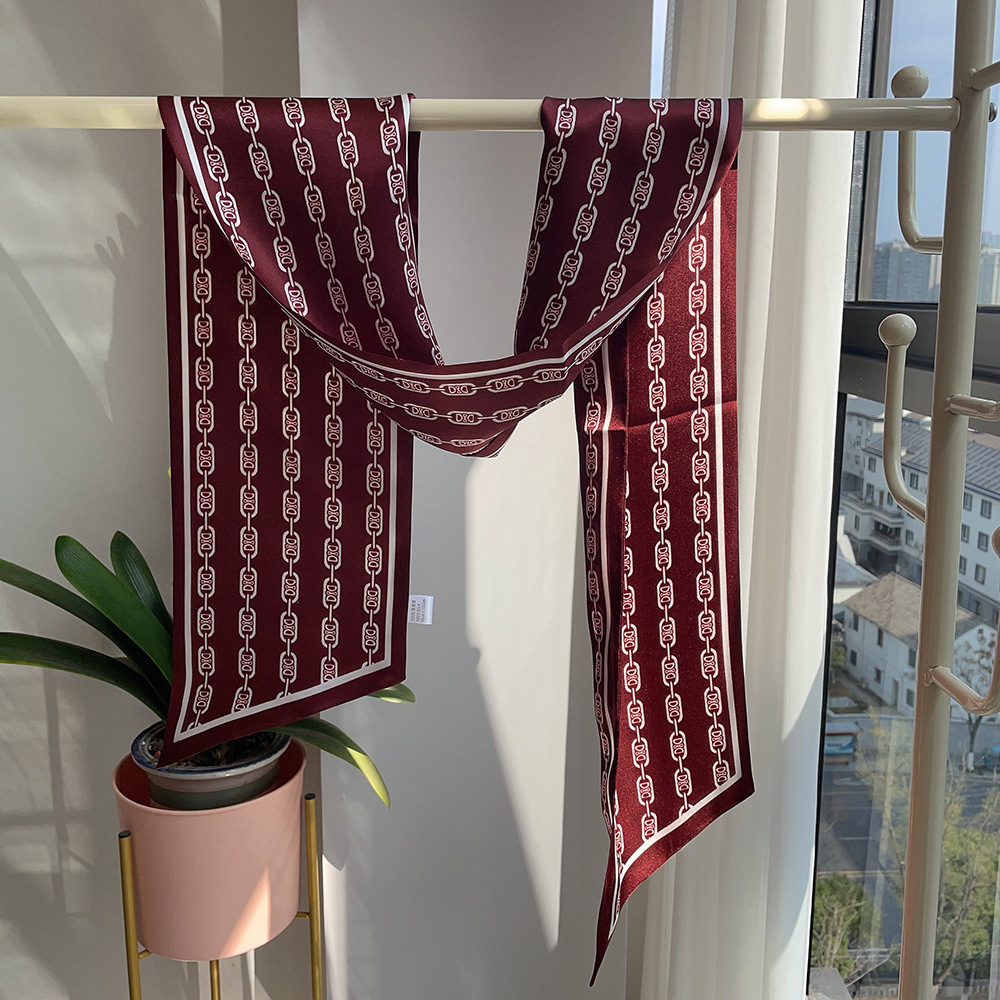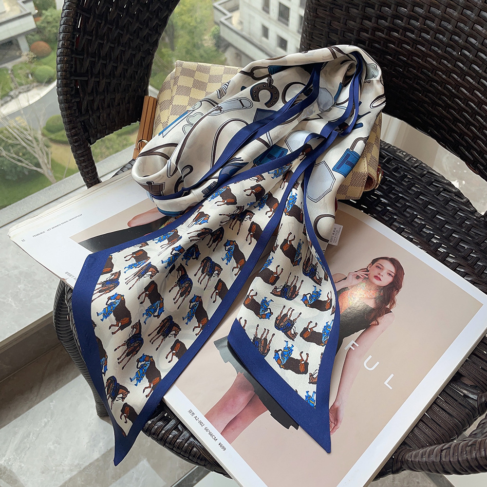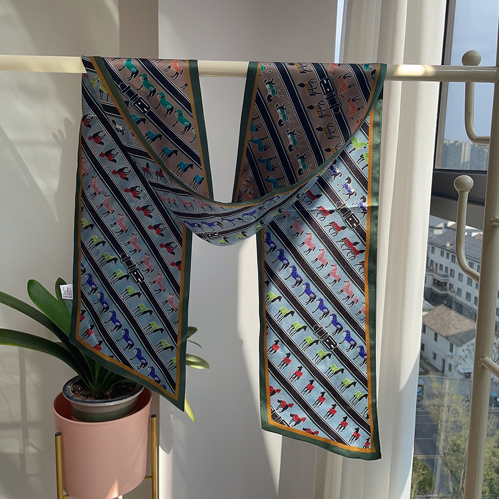 스타 실크 스카프 롱 더블 레이어 리본 스카프 여자 봄과 여름 올 매치 뽕나무 실크 스카프 한국식 멀티 컬러 스카프스토어 가기