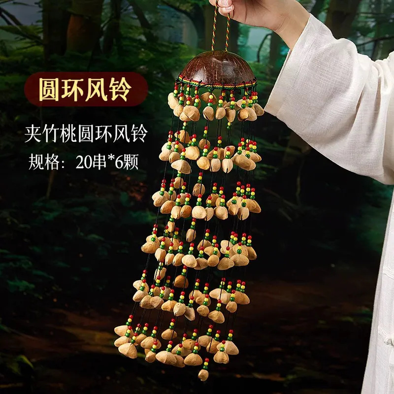 코코넛 껍질 클립 대나무 복숭아 바람 차임 인도네시아 수입 과일 껍질 수공예품 바람 차임 민족 스타일 창 장식 이국적인