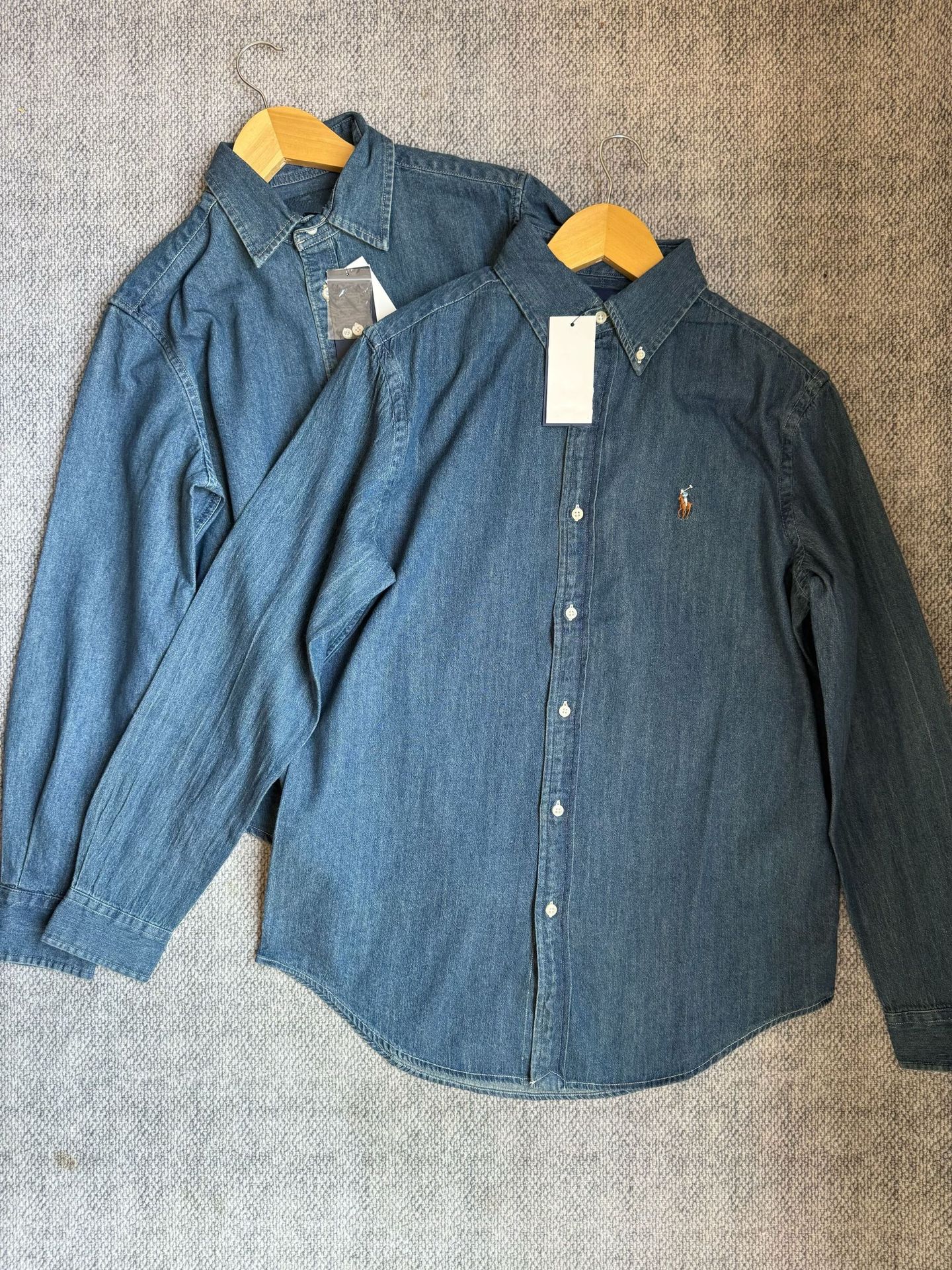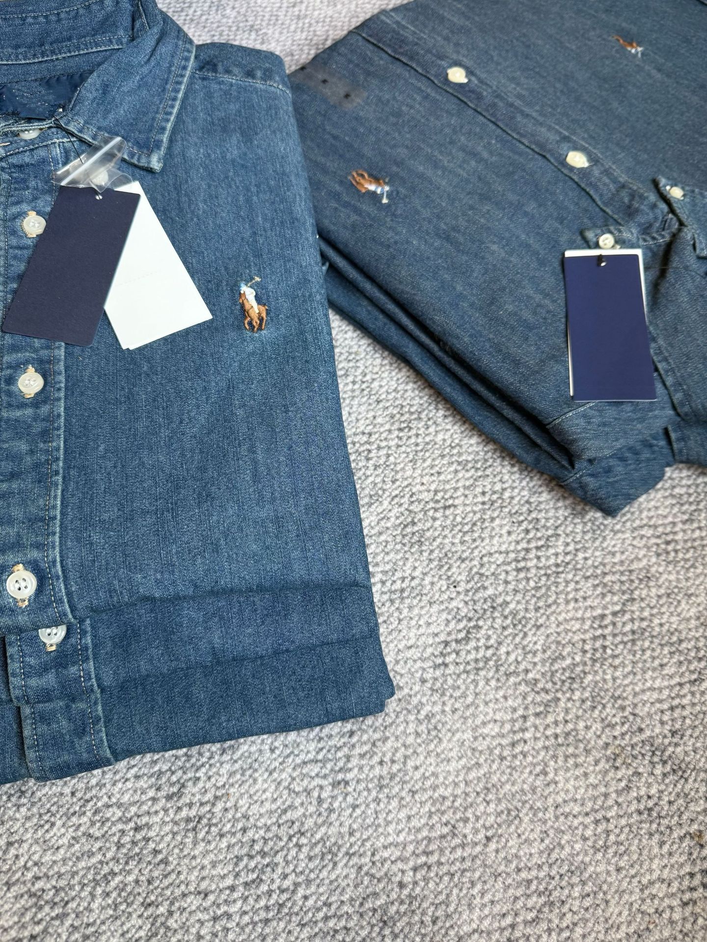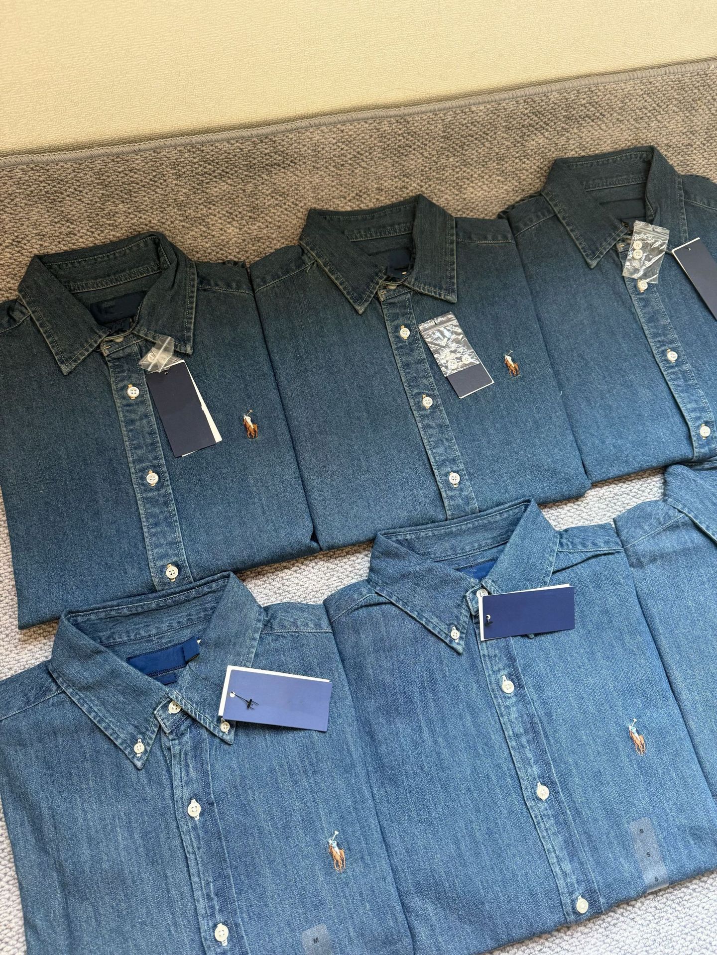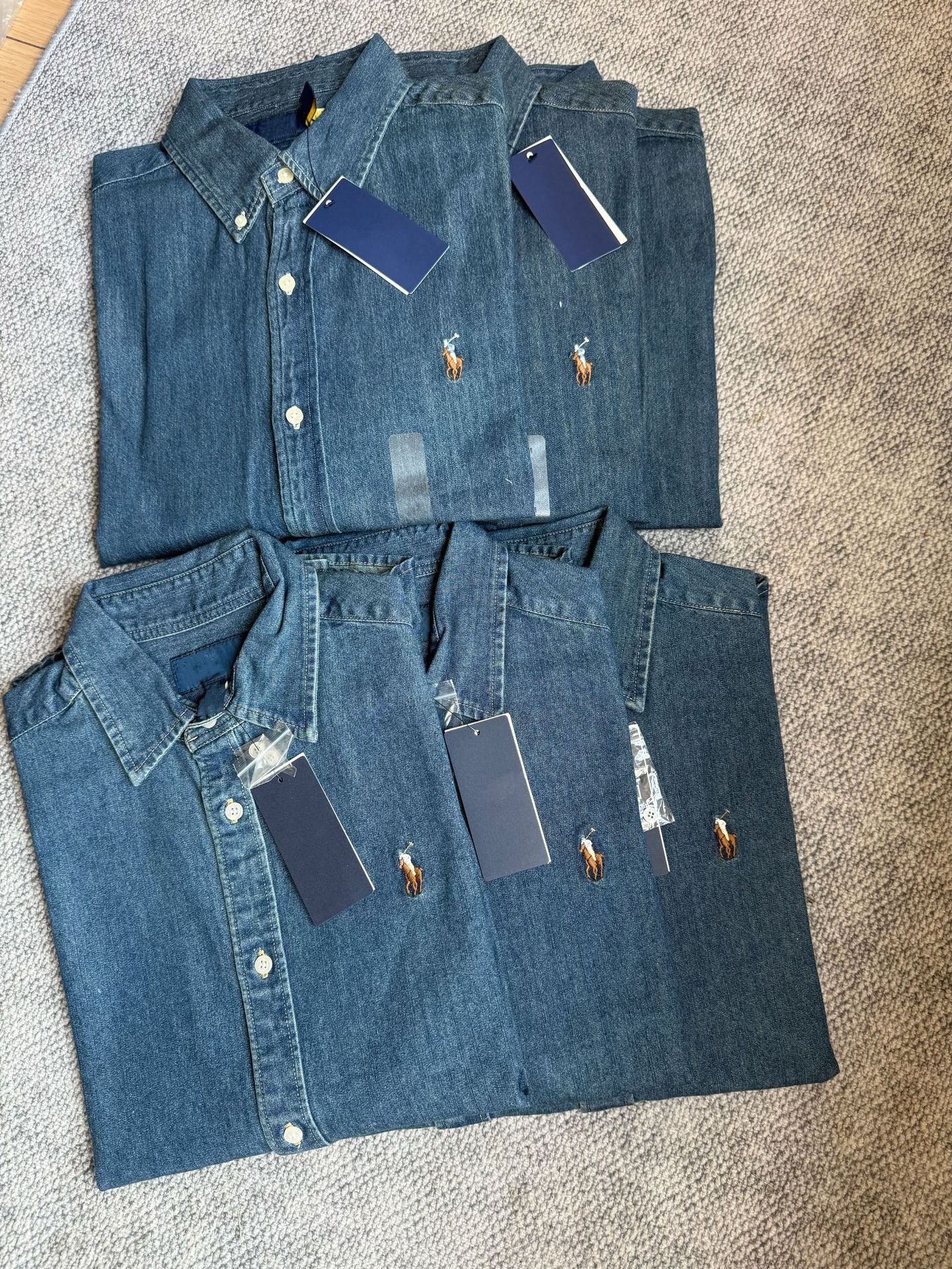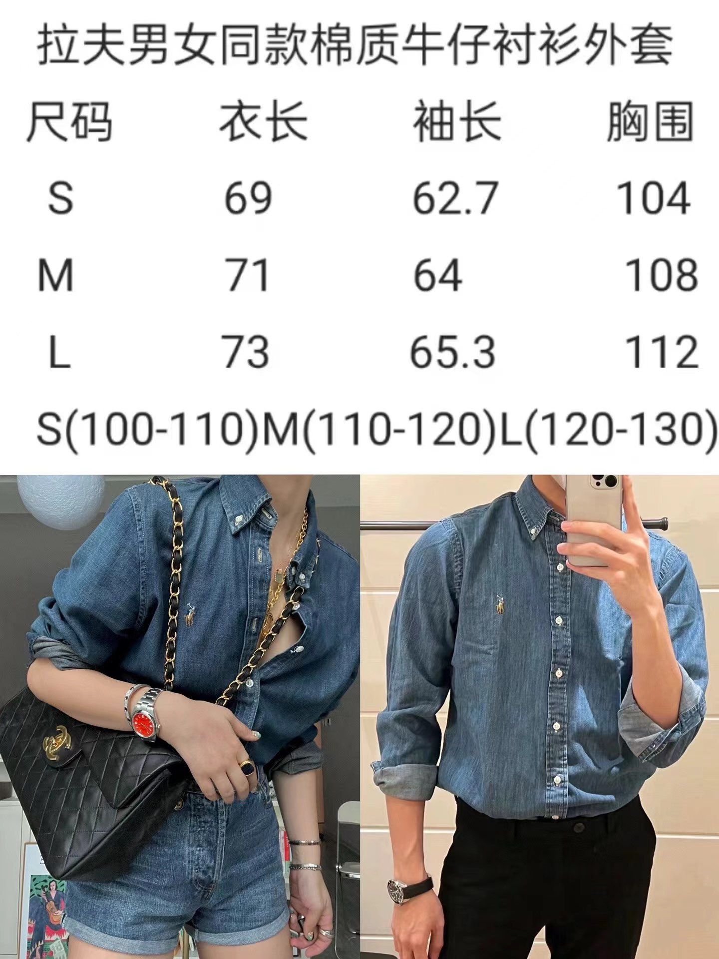 PL 랄프 포니 자수 클래식 올드 머니 스타일 엘 긴 소매 데님 셔츠 캐주얼 루즈 재킷 남성과 여성스토어 가기