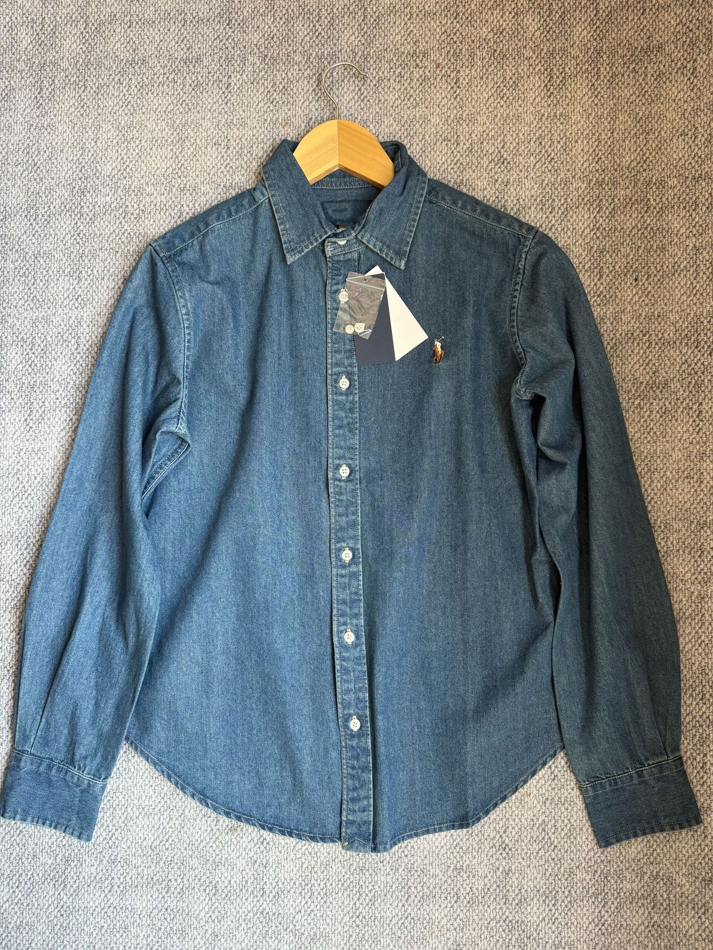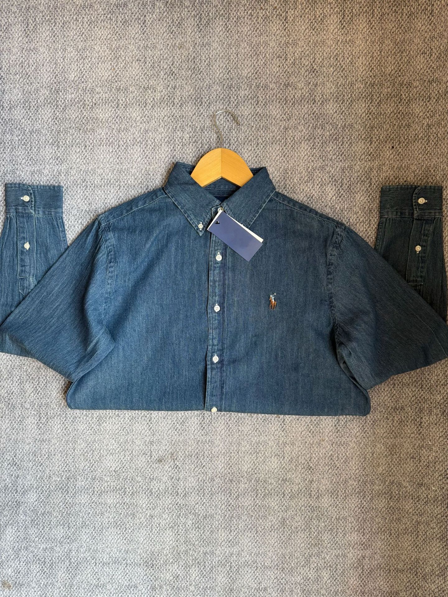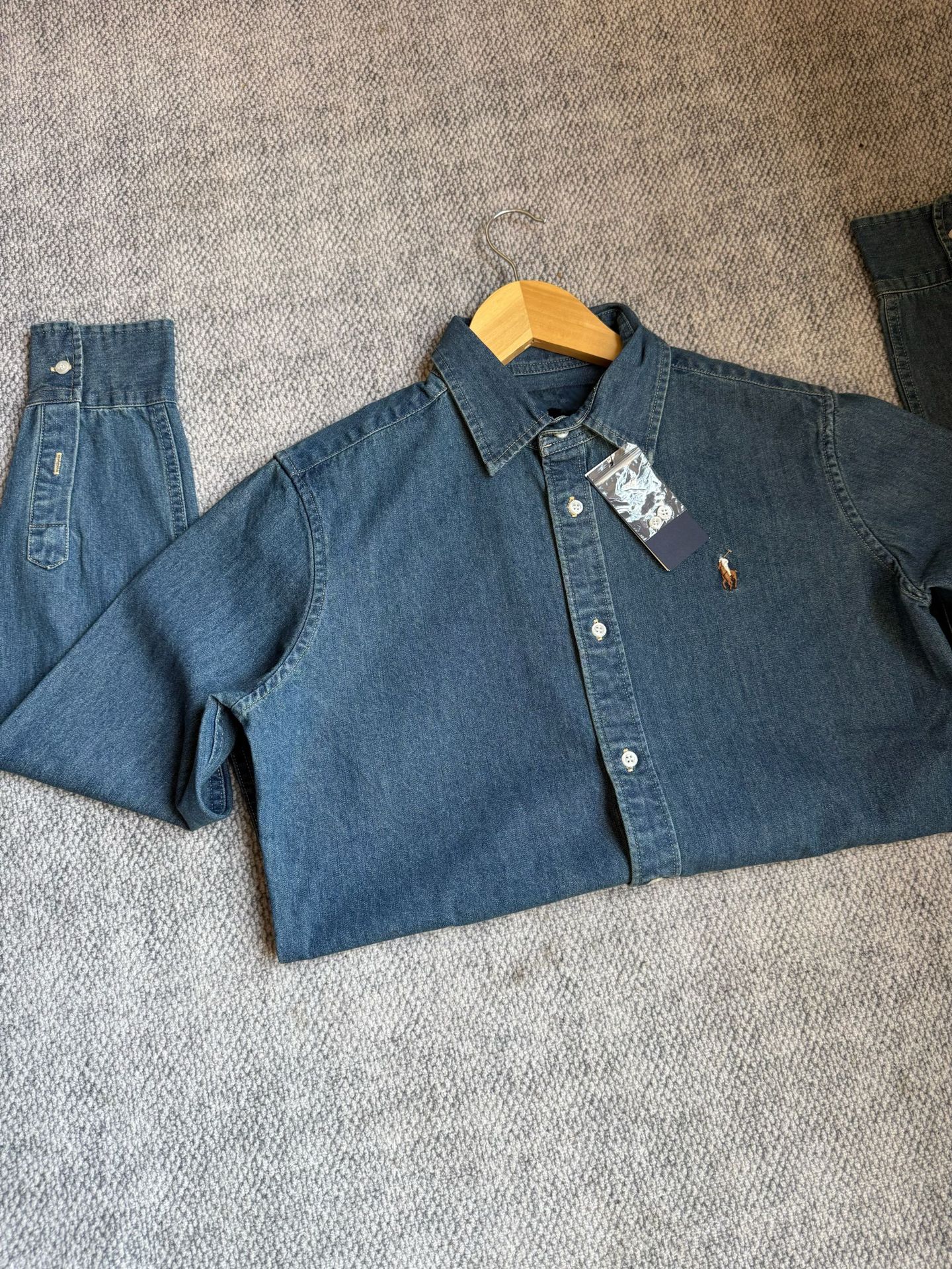 PL 랄프 포니 자수 클래식 올드 머니 스타일 엘 긴 소매 데님 셔츠 캐주얼 루즈 재킷 남성과 여성
