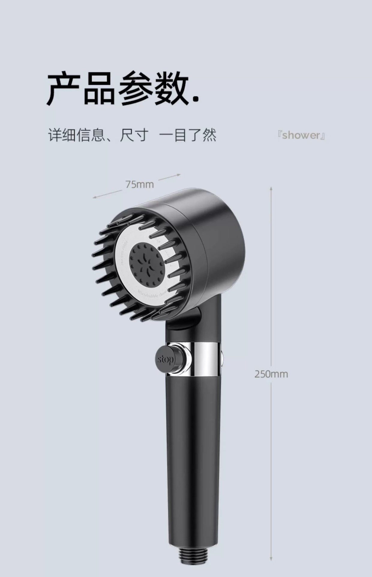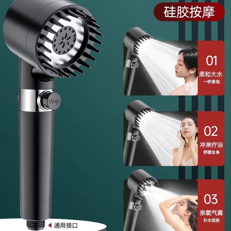 • 업그레이드된 4.0 플래그십 모델 [초강력 부스팅으로 피부에 해롭지 않음] 블랙 마사지 필터 샤워헤드(마사지 실리콘 포함)
