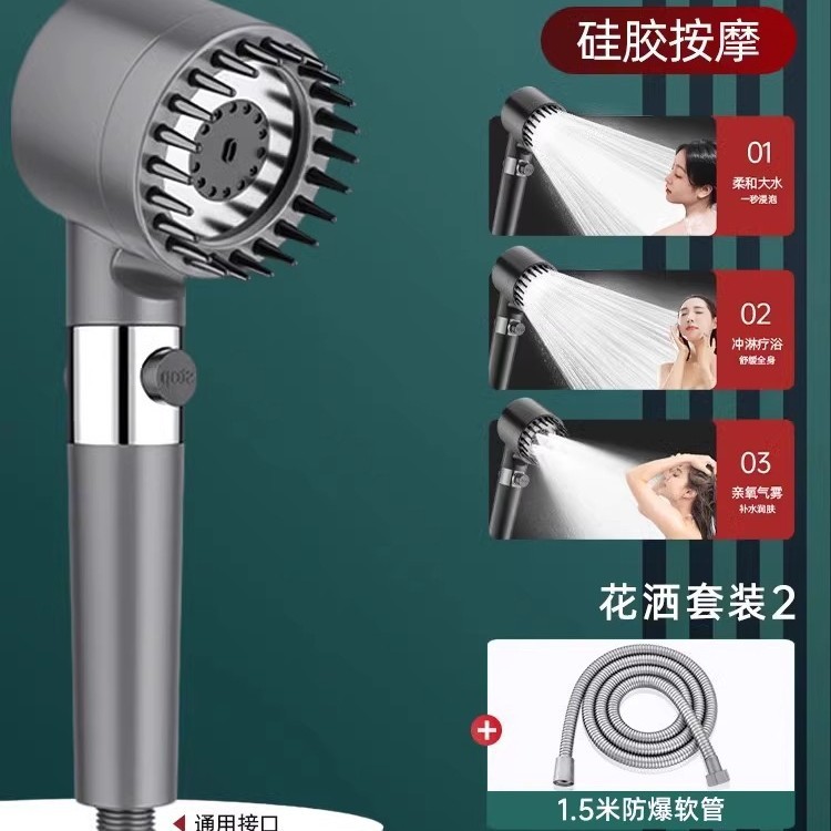 • [슈퍼차지 세트3] 건그레이 마사지 필터 샤워기 + 방폭파이프 1.5m개 + 브라켓
