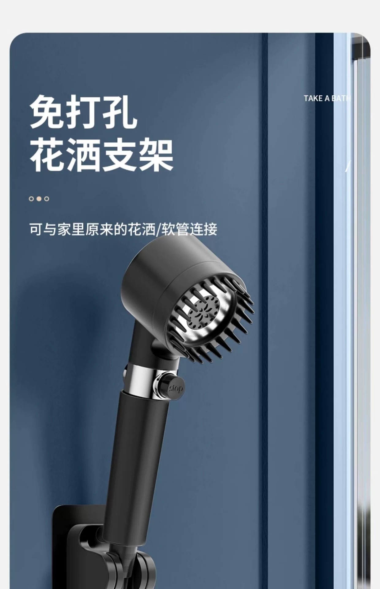 • [슈퍼차지 세트3] 블랙 마사지 필터 샤워기 + 방폭파이프 1.5m개 + 브라켓.