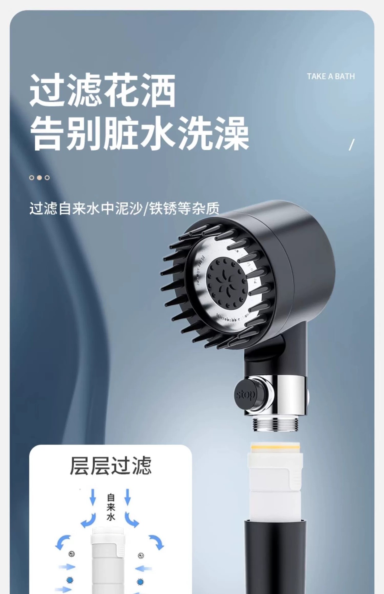 • 업그레이드된 4.0 플래그십 모델 [초강력 부스팅으로 피부에 해롭지 않음] 건그레이 마사지 필터 샤워헤드(마사지 실리콘 함유)