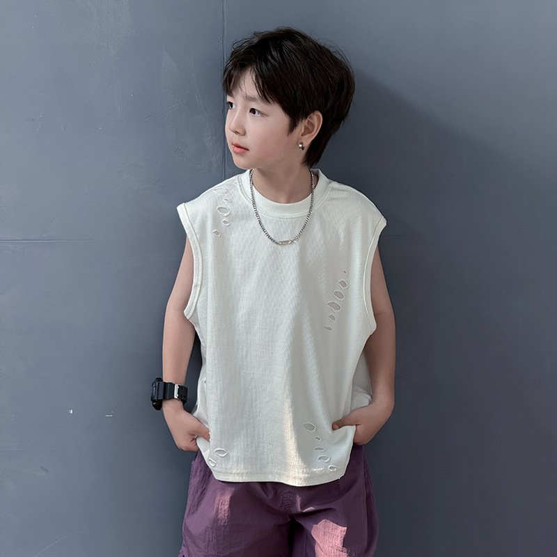 Emo Beibei 어린이 2025 여름 조수 쿨 홀 조끼 소년 큰 어린이 느슨한 편안한 면 민소매 탑