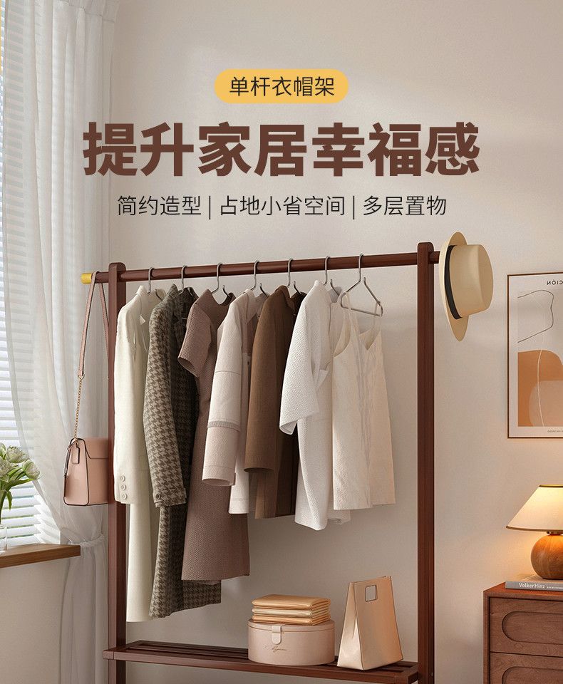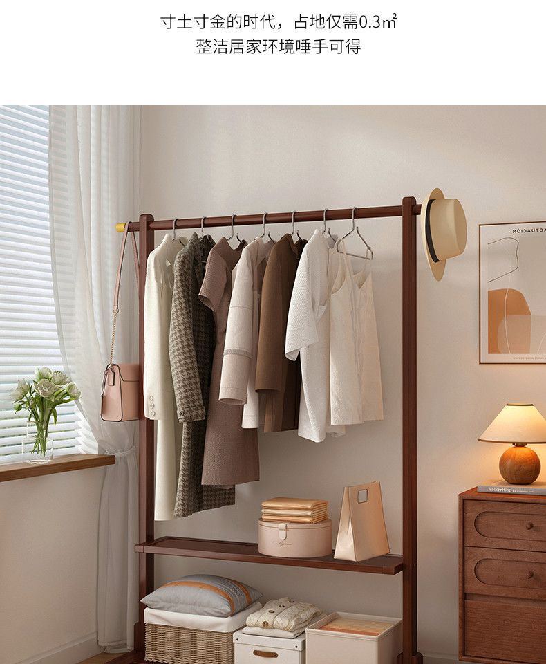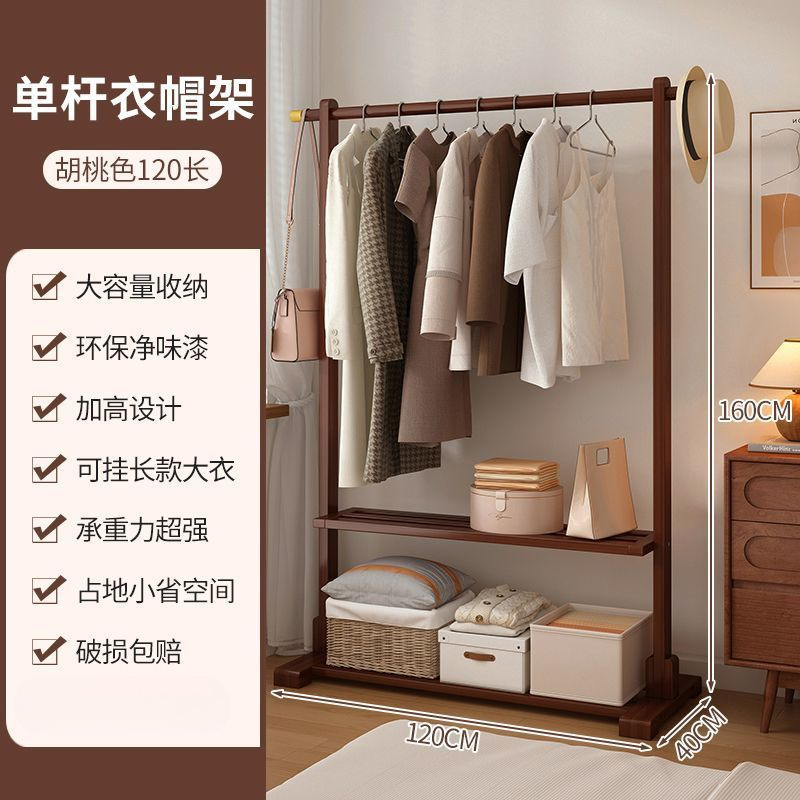 침실 간단한 옷 옷걸이 가정용 의류 비 단단한 나무 옷 옷걸이 바닥 서 수직 옷 랙 보관 보관스토어 가기
