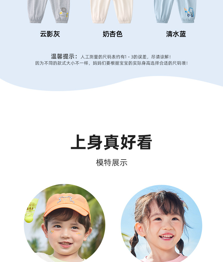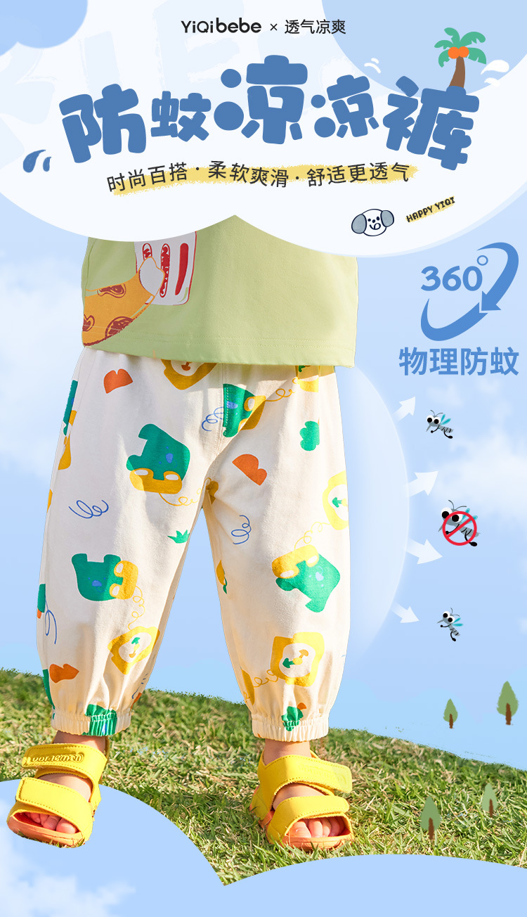 [Yiqi Baby] 새로운 어린이 여름 시원하고 얇은 소년 모기 방지 바지 느슨하고 통기성이 좋은 소녀 및 아동복