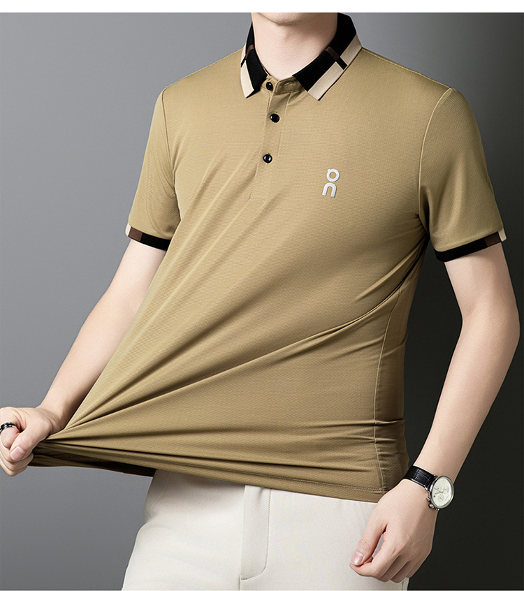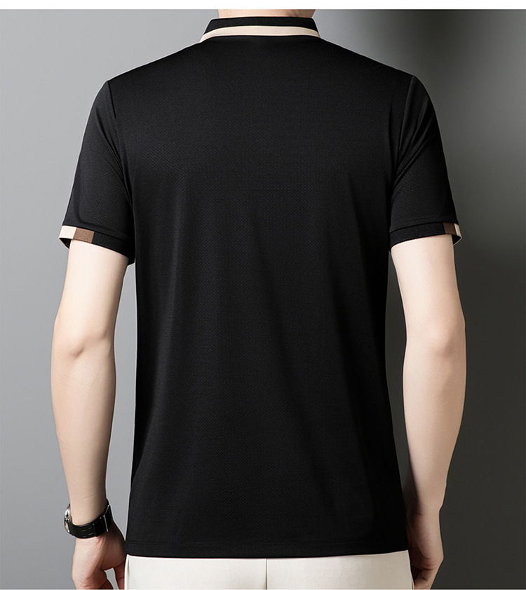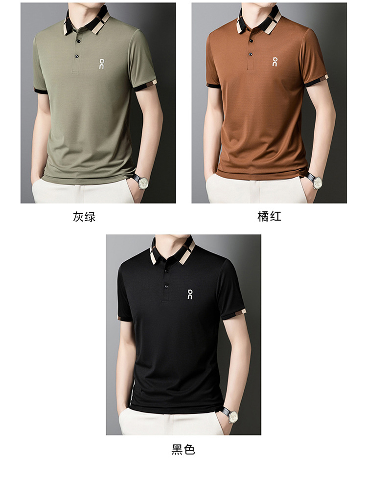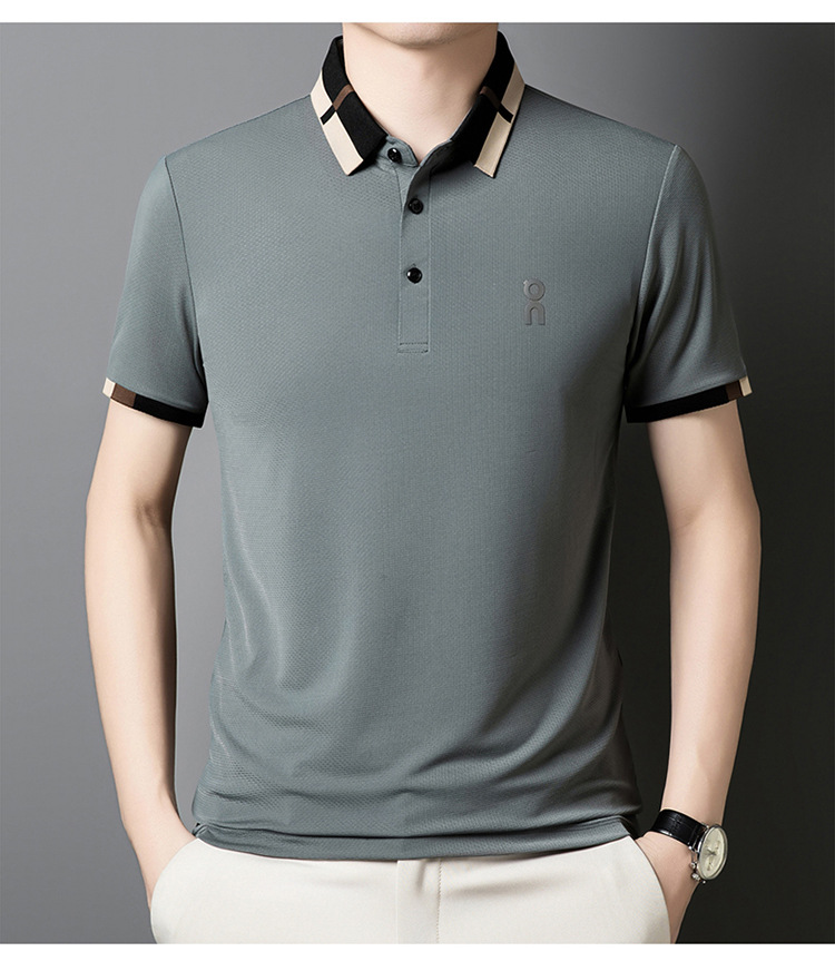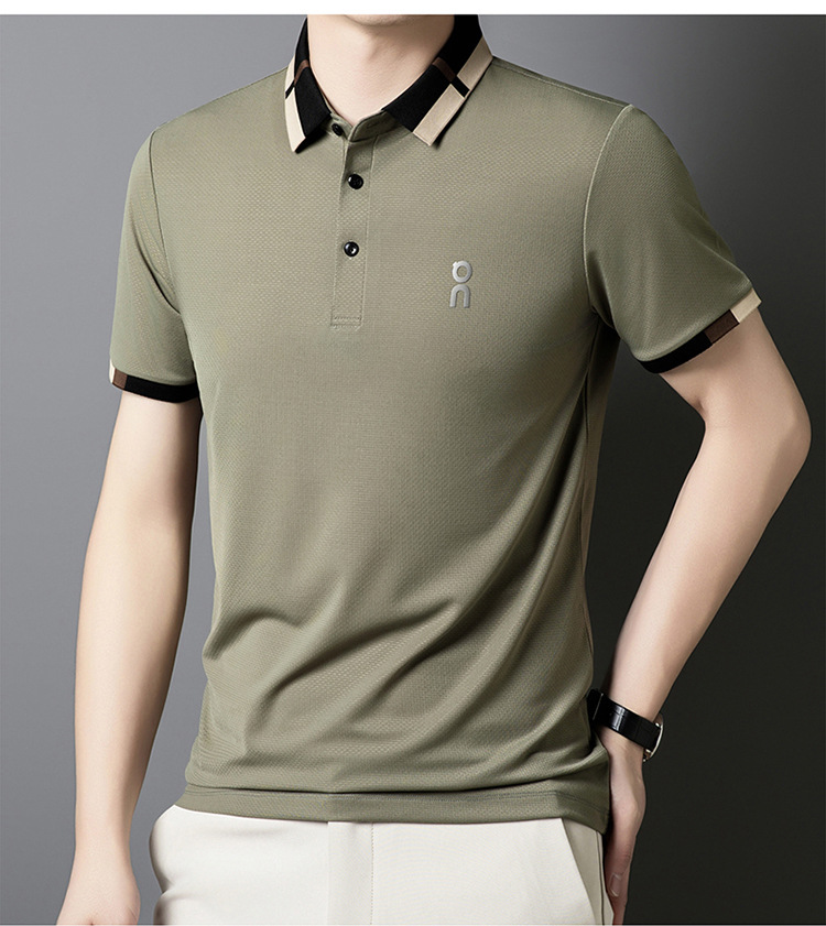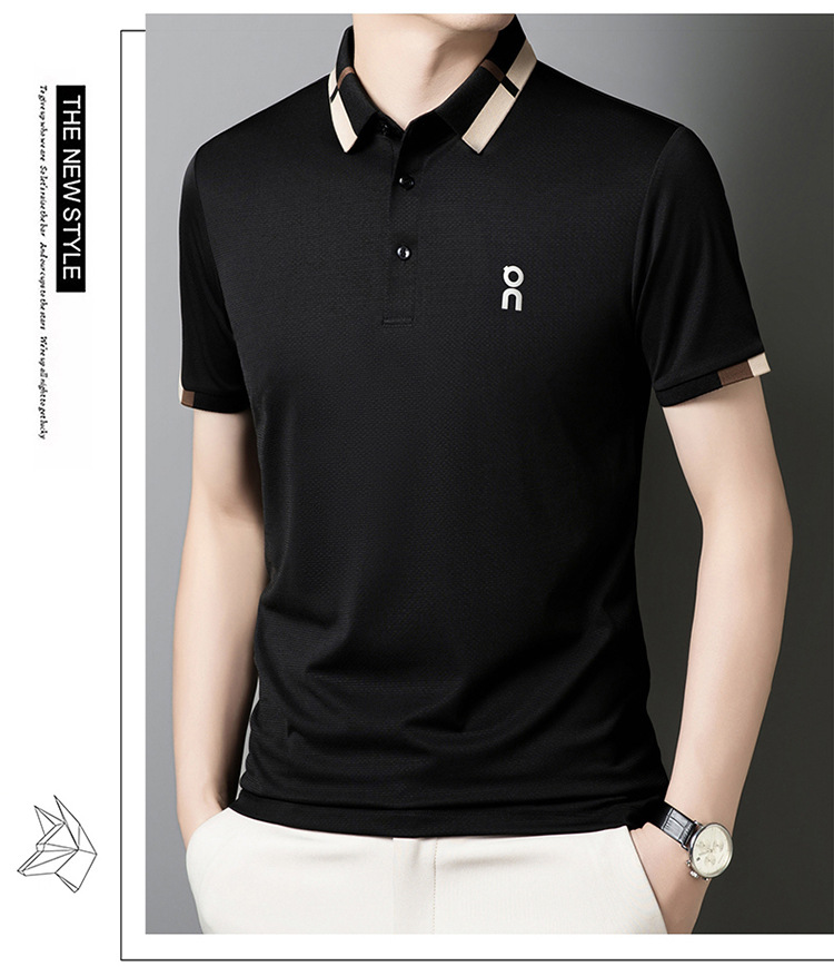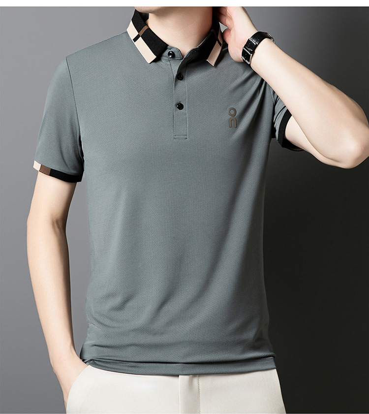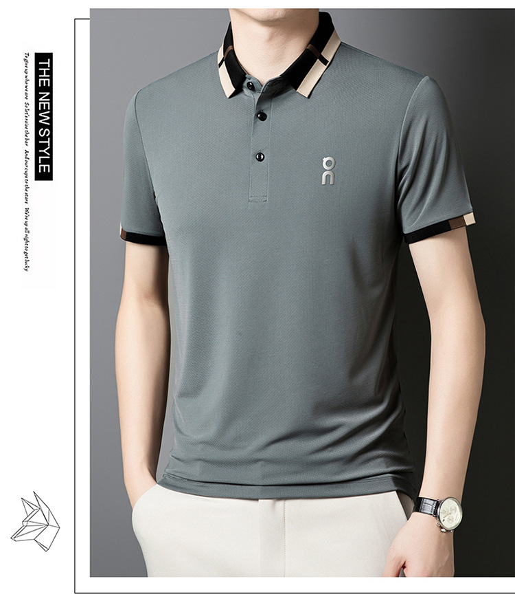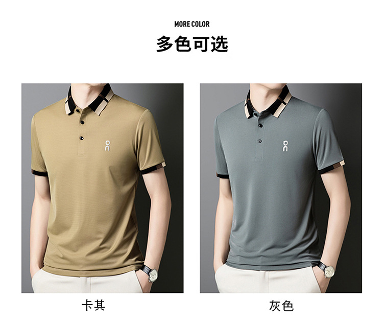 남성 폴로 셔츠 여름 새로운 비즈니스 캐주얼 남성 아이스 실크 시원한 탄성 옷깃 짧은 소매 티셔츠 도매스토어 가기