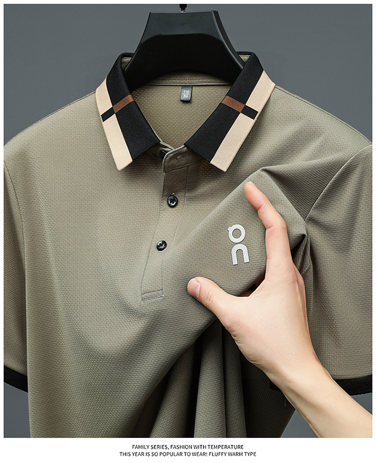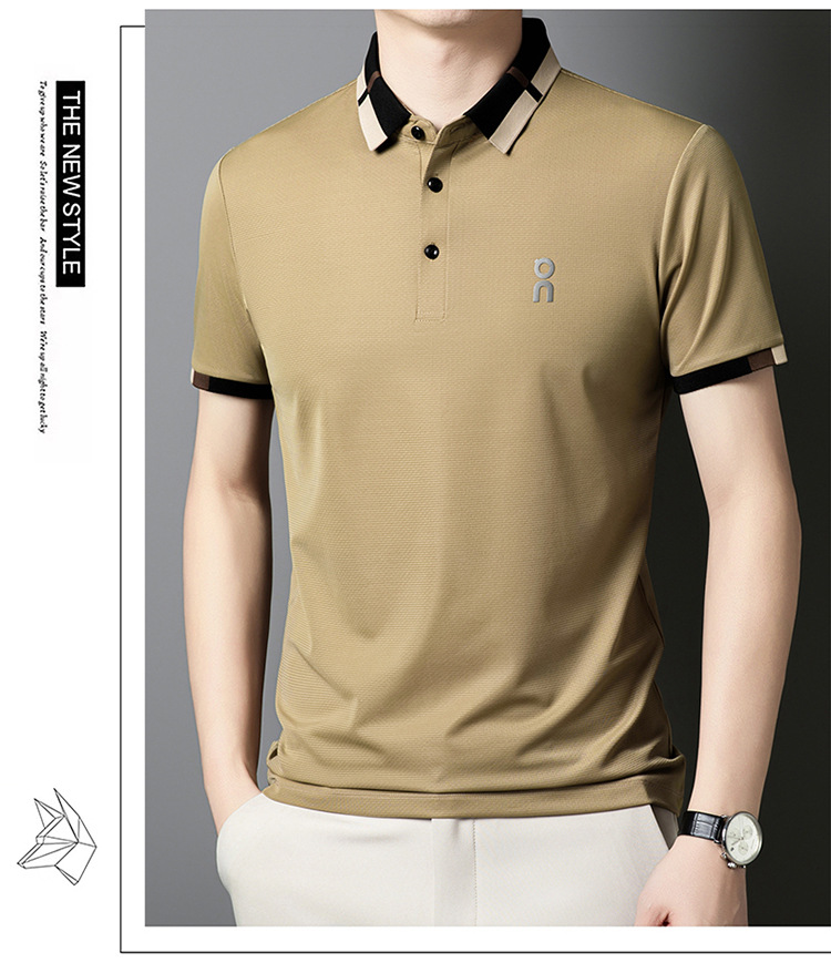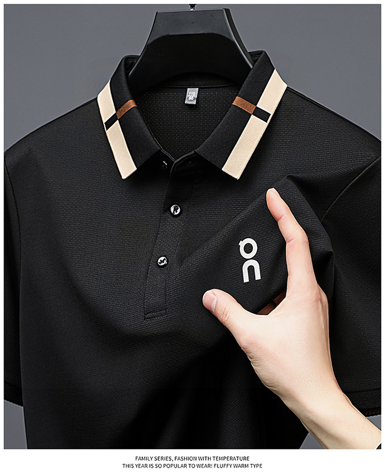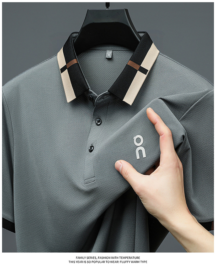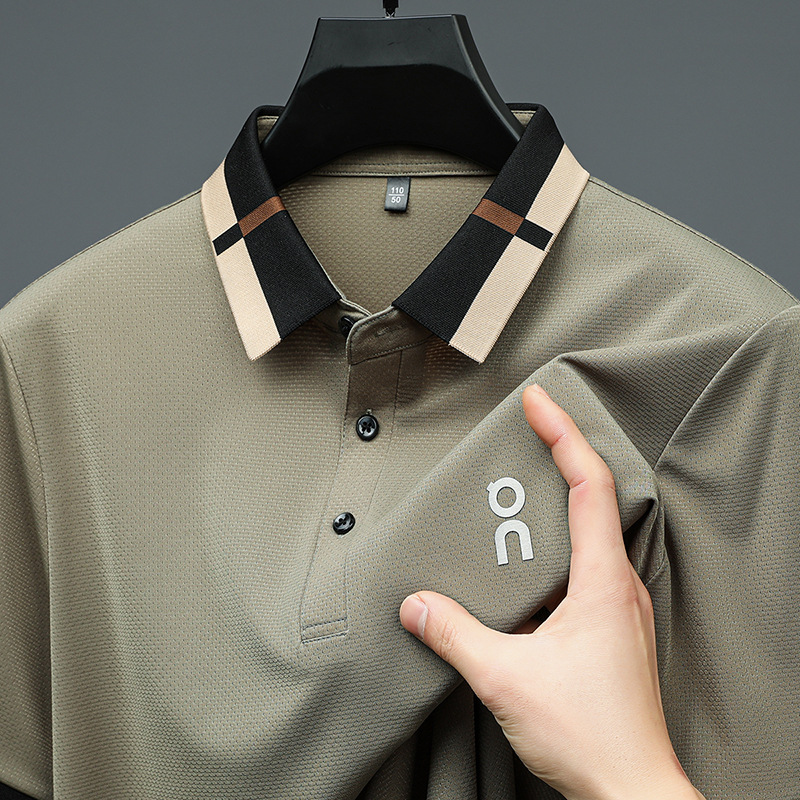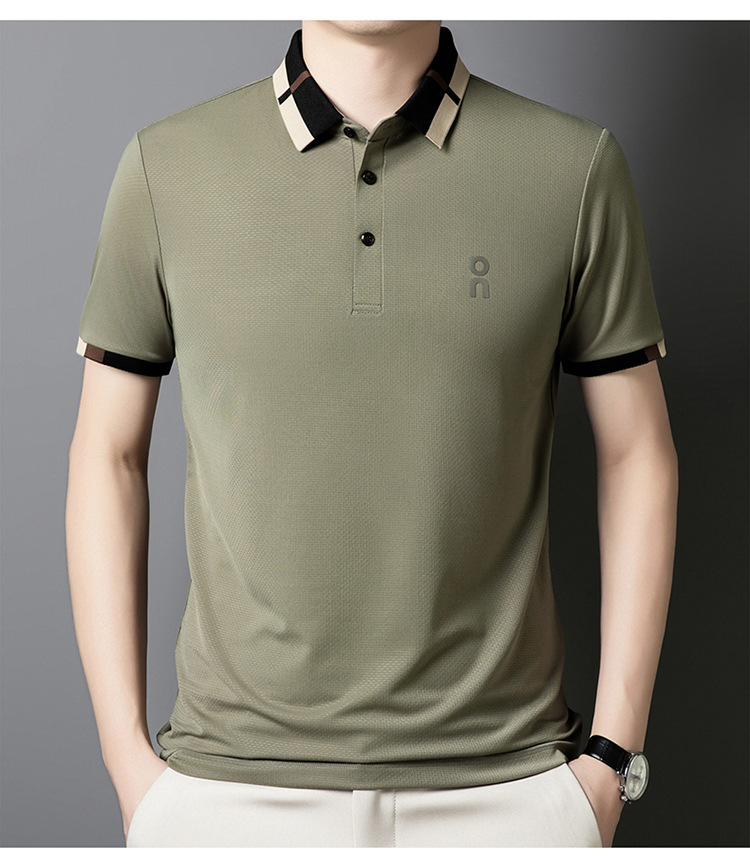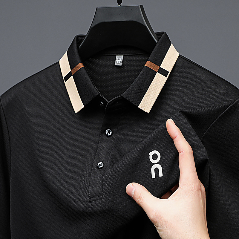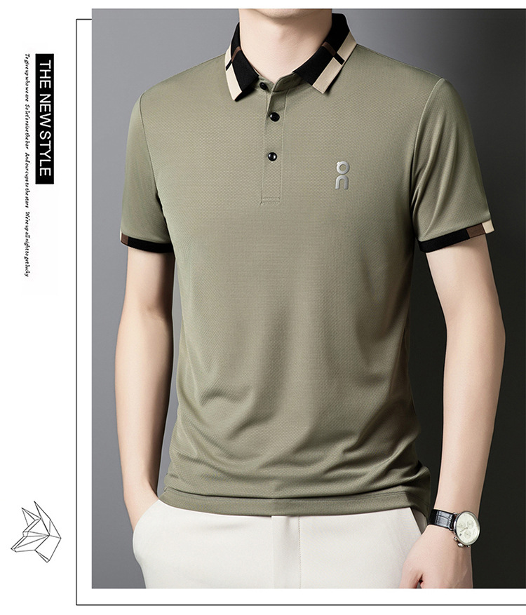 남성 폴로 셔츠 여름 새로운 비즈니스 캐주얼 남성 아이스 실크 시원한 탄성 옷깃 짧은 소매 티셔츠 도매스토어 가기