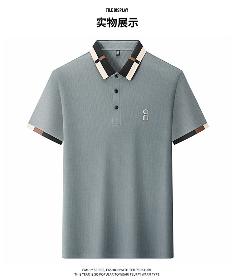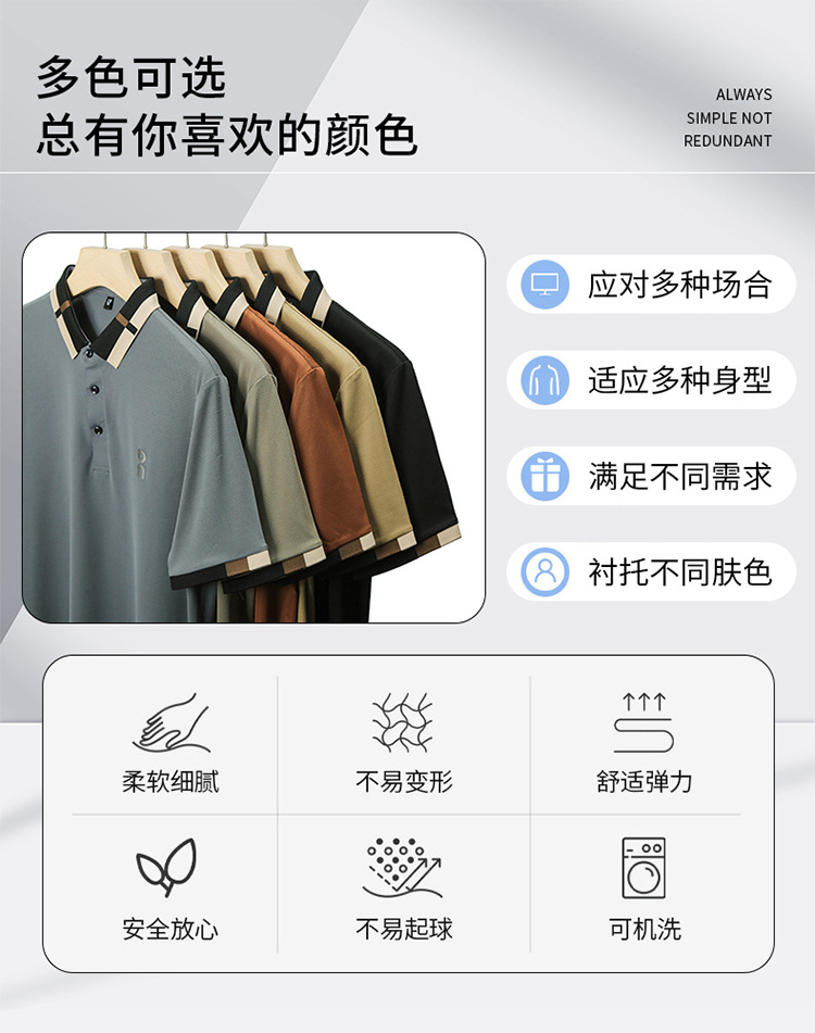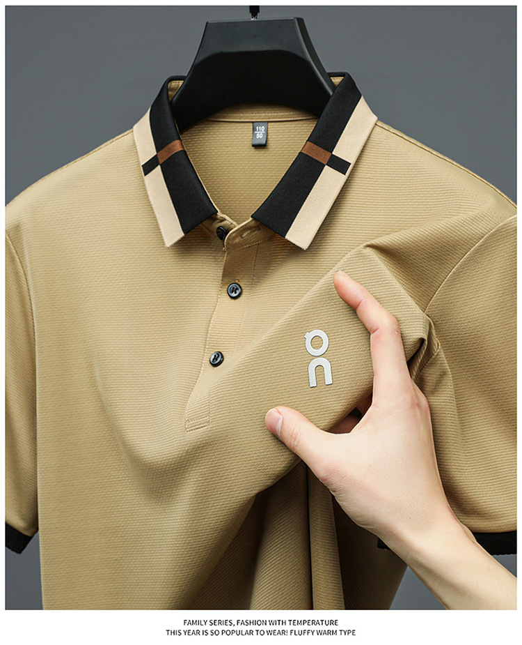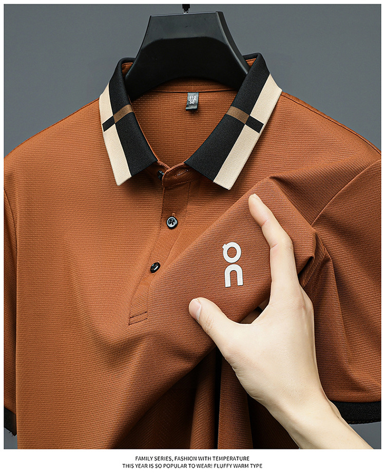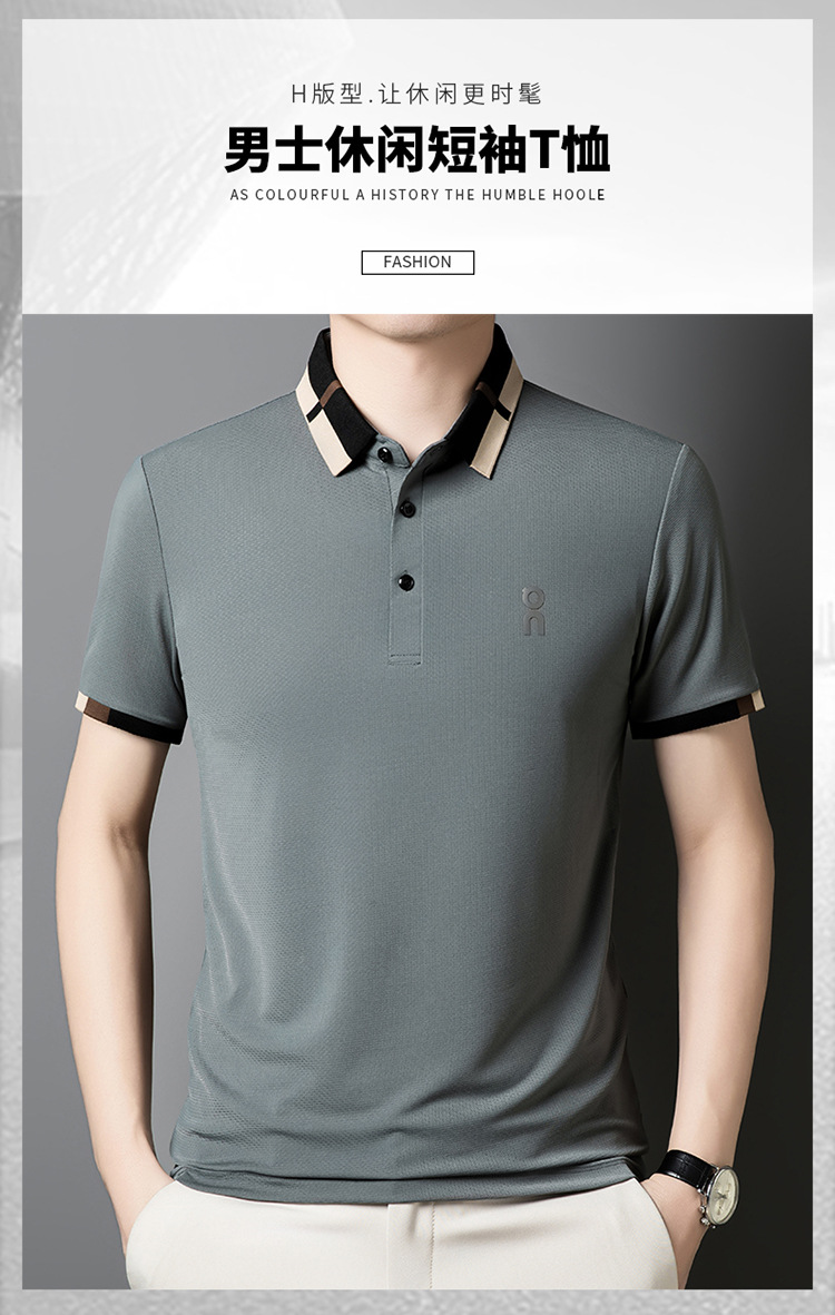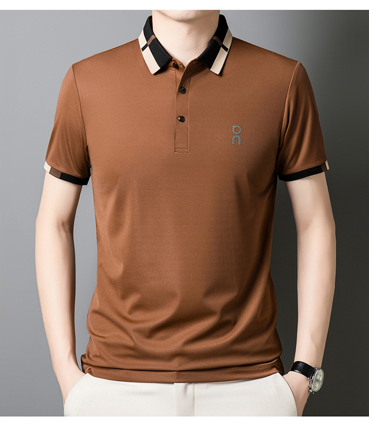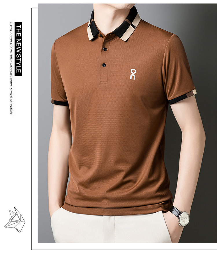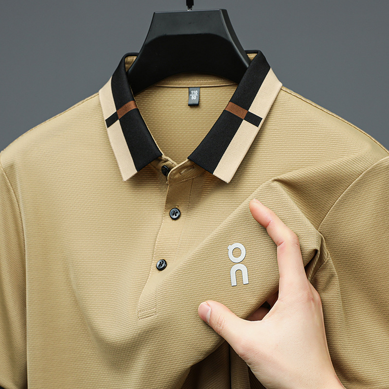 남성 폴로 셔츠 여름 새로운 비즈니스 캐주얼 남성 아이스 실크 시원한 탄성 옷깃 짧은 소매 티셔츠 도매스토어 가기