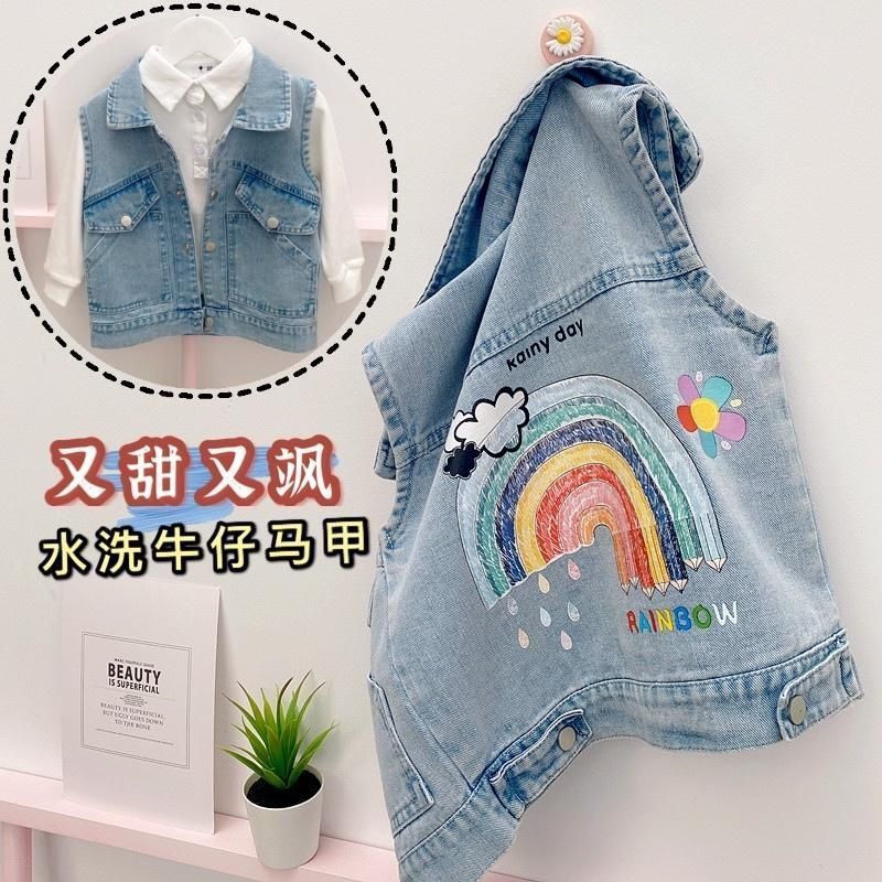 아동용 데님 조끼 2025 봄 여름 스타일 남녀 아기 다용도 조끼 아동용 한국식 외국 스타일 겉옷 조끼스토어 가기