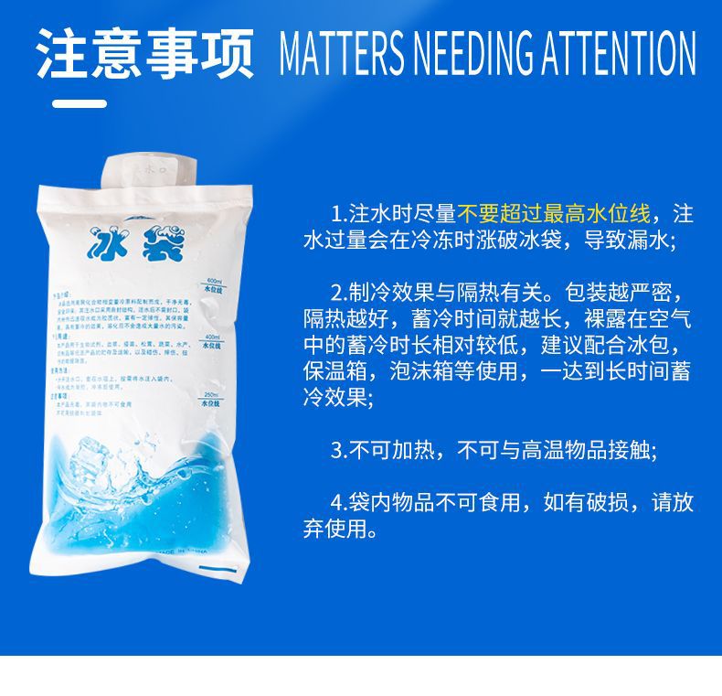일회용 물이 채워진 얼음주머니 특급 냉동 재사용 가능한 가정용 상업용 매점 식품 냉장 및 신선 유지
