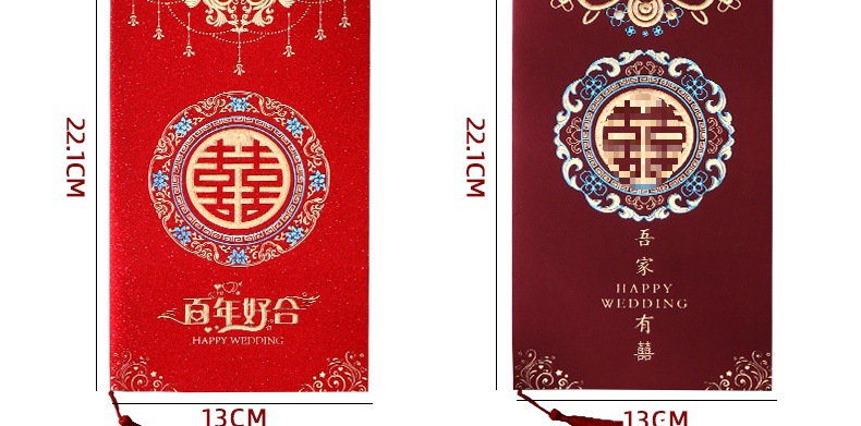 • 필기 버전 - 장미 이중 행복 봉투 초대장 [빨간색 금도금 내부 페이지] 50부