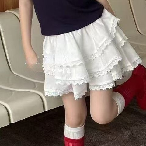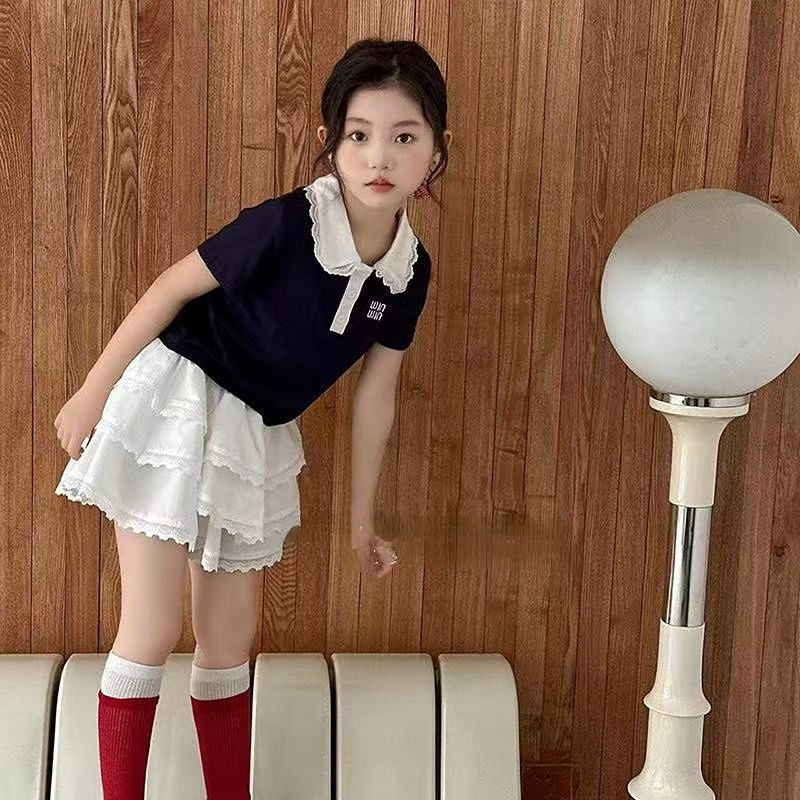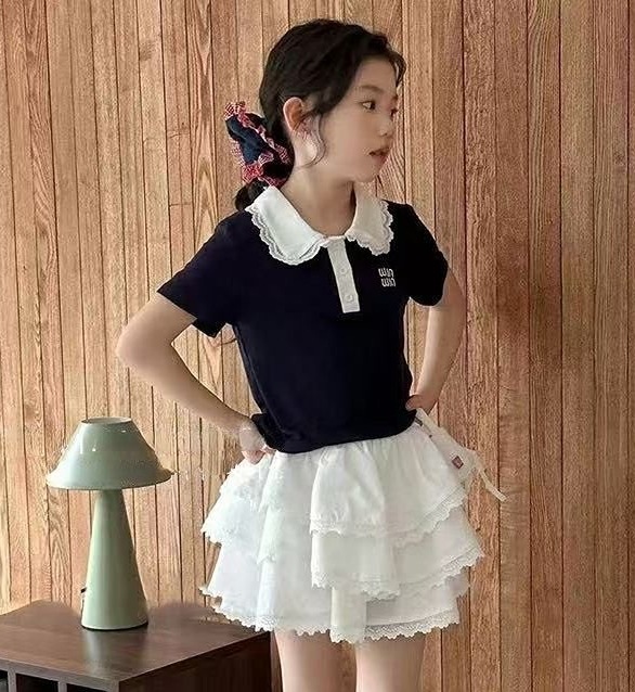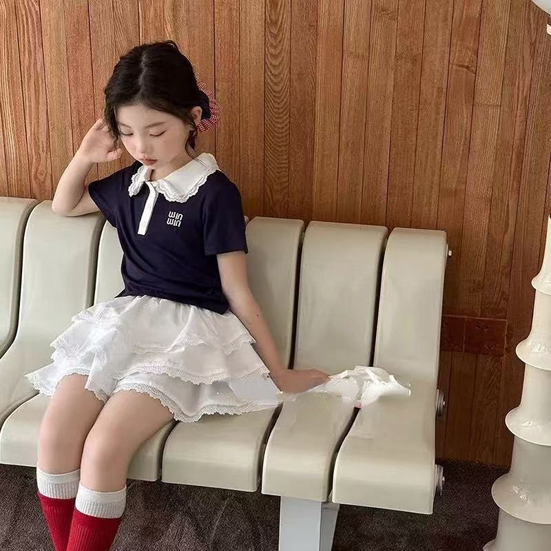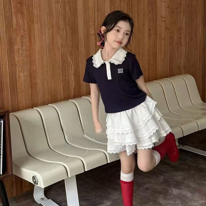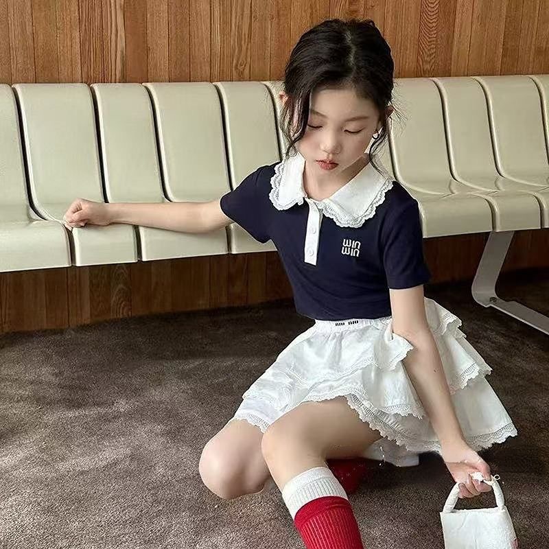 여자 케이크 치마 세트 2025 새로운 여름 어린이 유행 반팔 티셔츠 여자 치마 투피스 세트