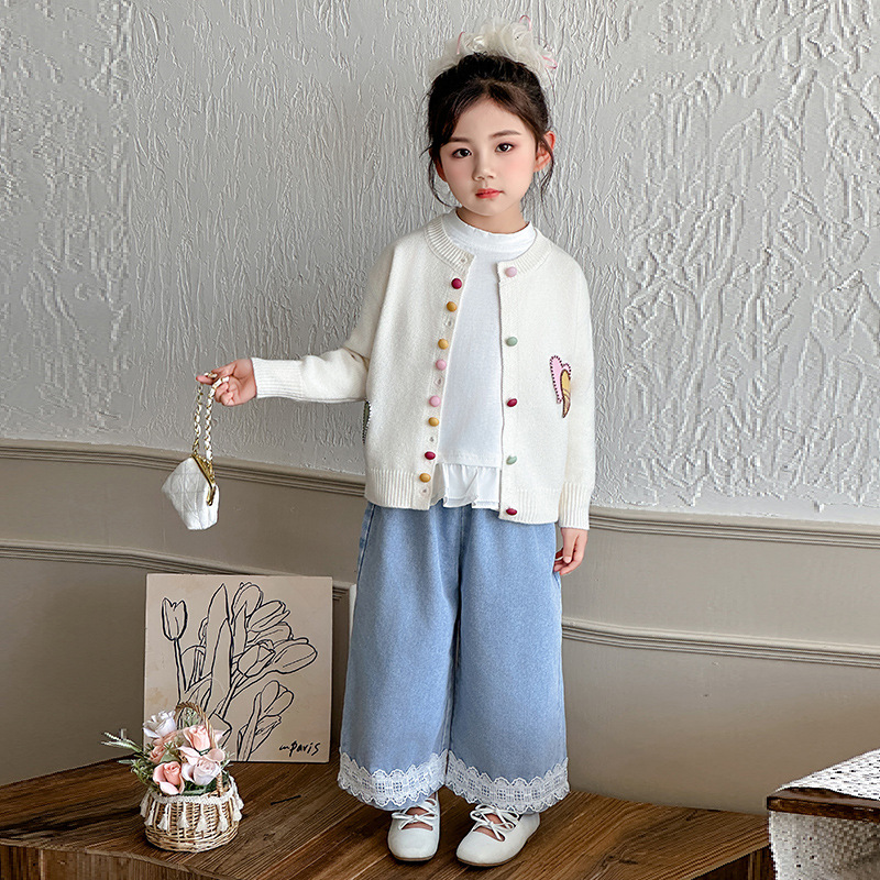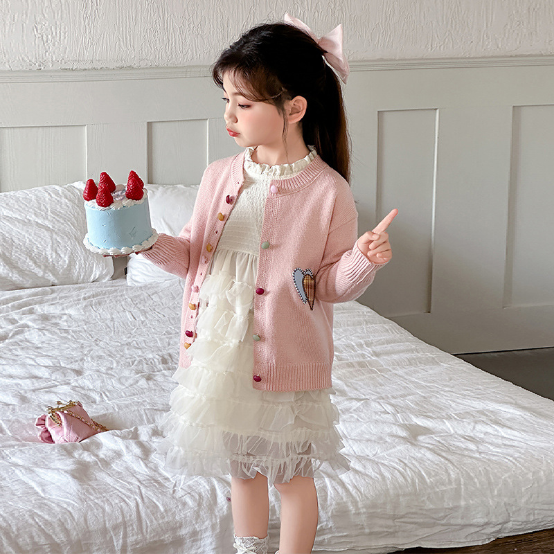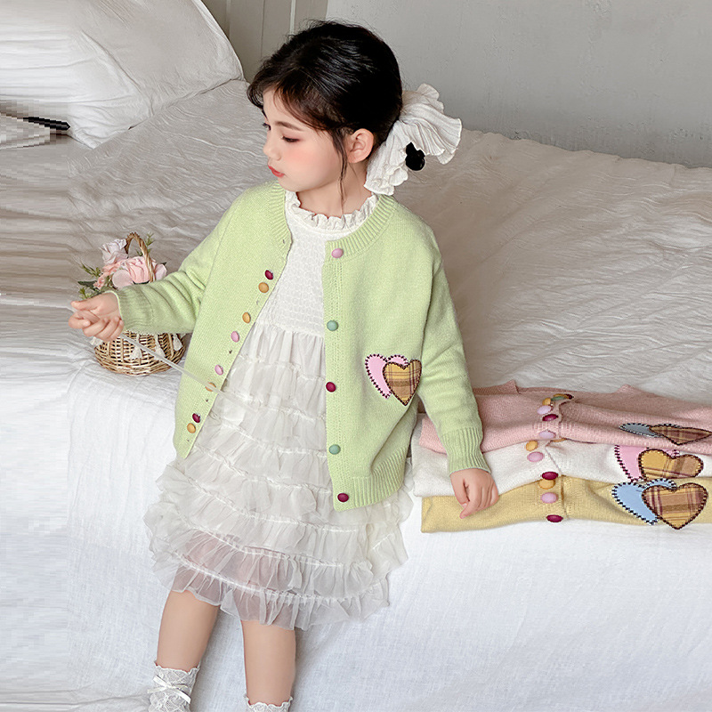 소녀 카디건 스웨터 봄과 가을 2025 새로운 서양식 어린이 봄 착용 중대형 어린이 니트 코트 트렌디 탑스토어 가기