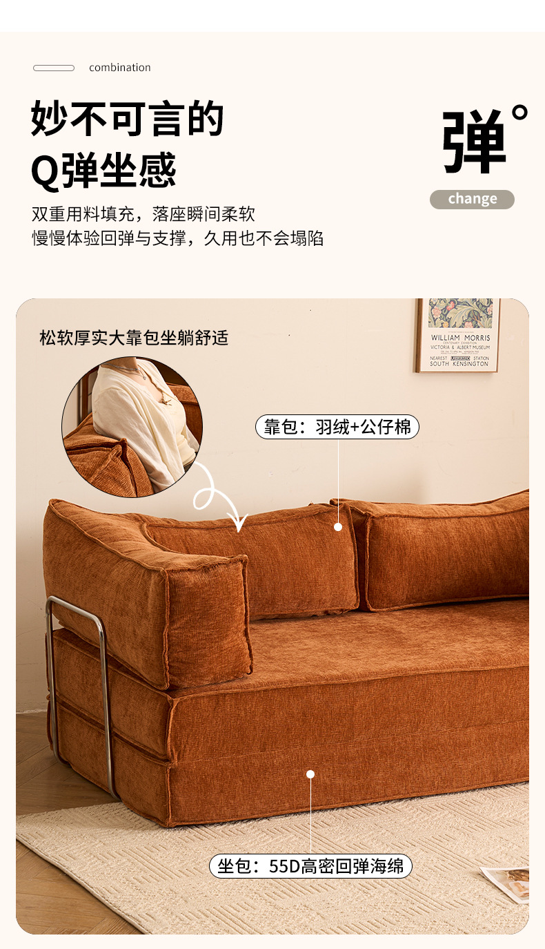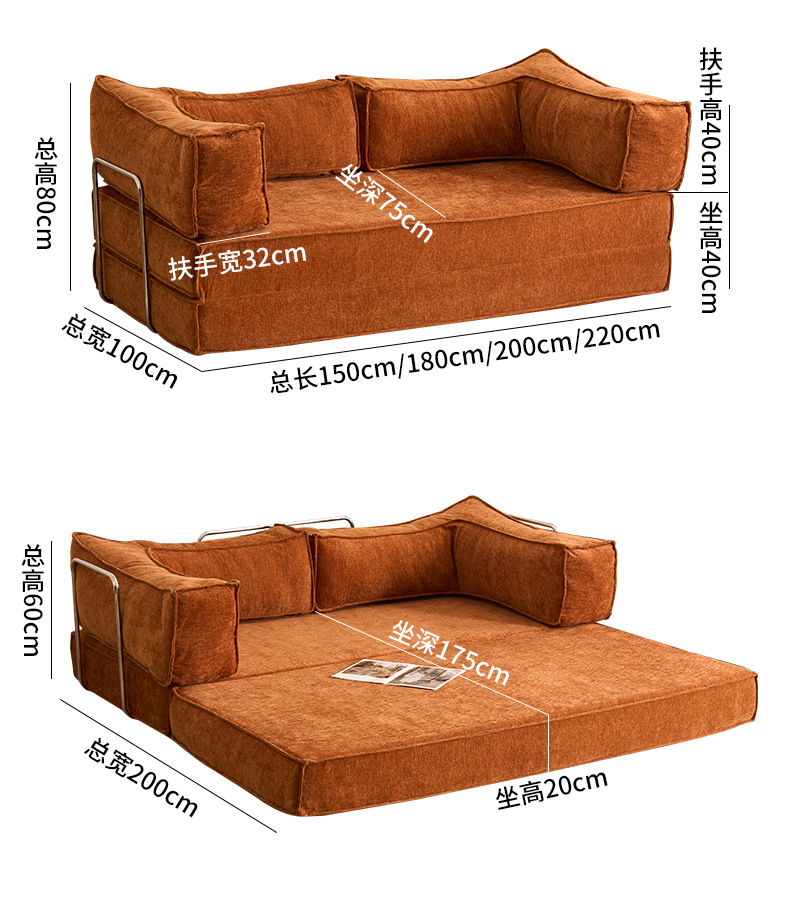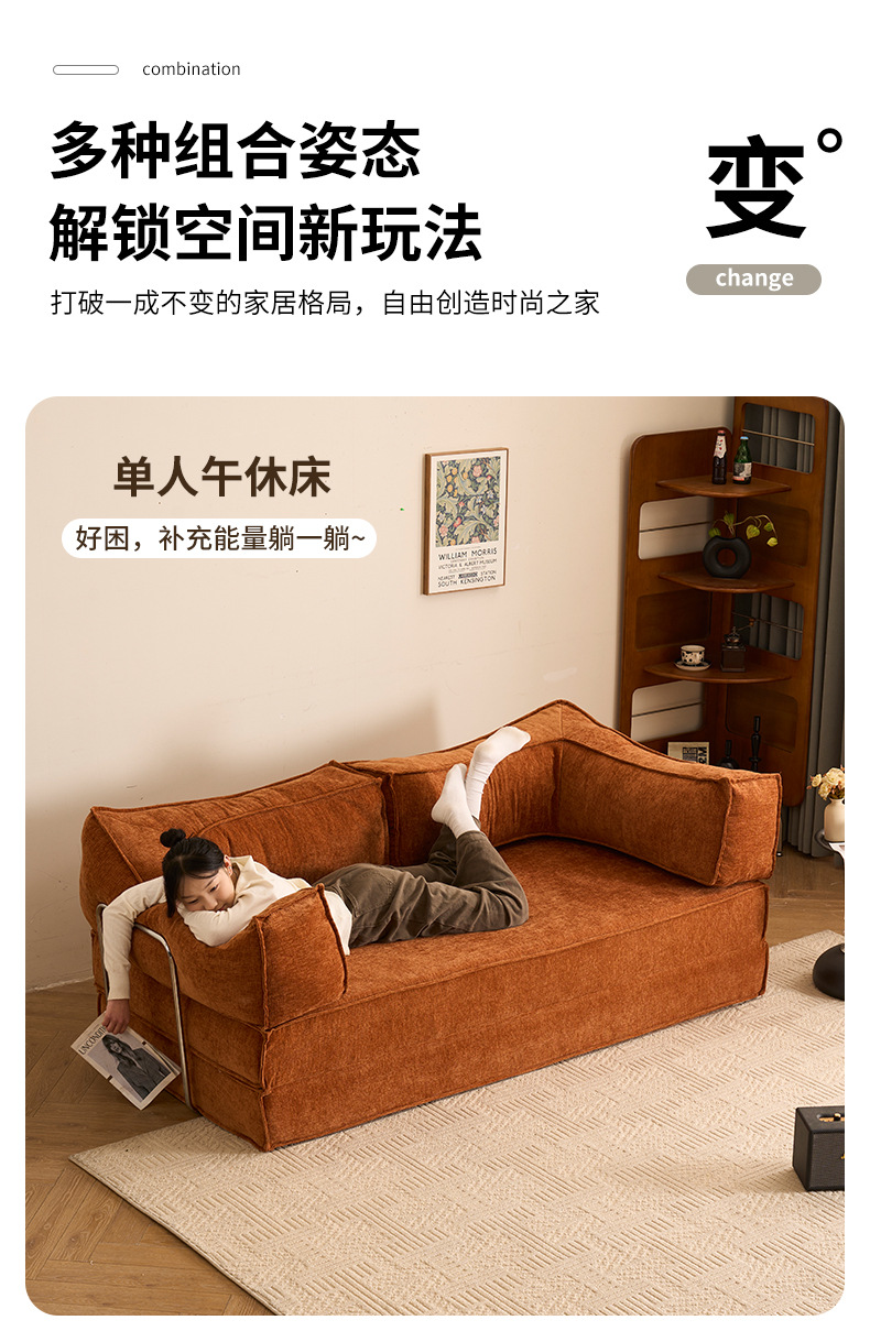 골동품 직물 소파 빈티지 접이식 소파 작은 아파트 거실 가정용 이동식 세척 가능한 게으른 모듈 형 소파