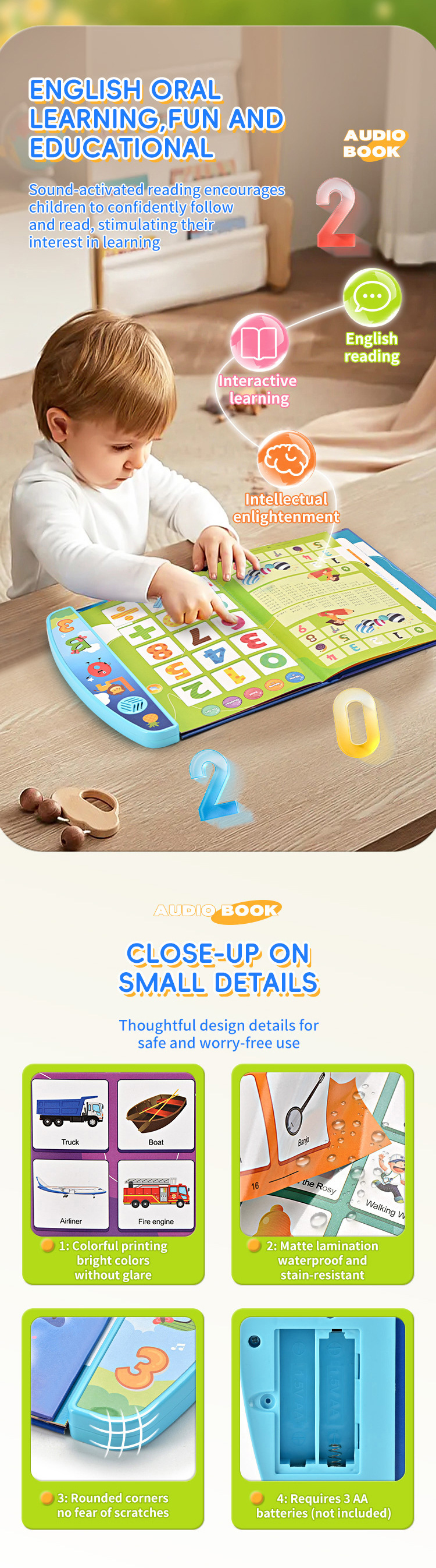 국경 간 새로운 영어 포인트 독서 어린이 조기 교육 장난감 오디오 북 영어 도서 영어 전자 책