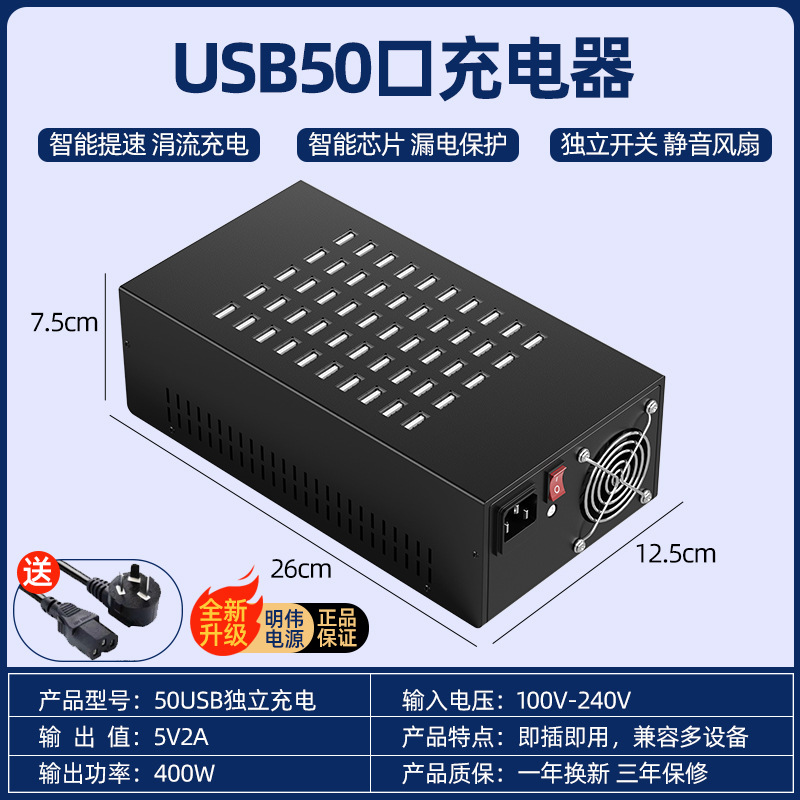 • 3C 인증 단일 행 50포트 400w 2세대 + 안정적인 고속 충전 + MEAN WELL 전원 공급 장치