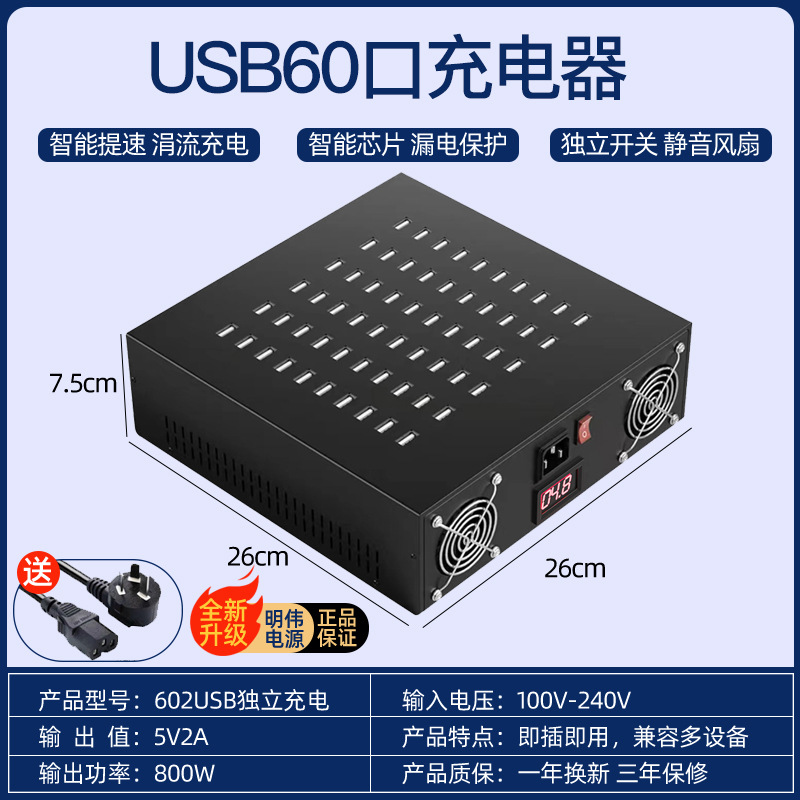 • 3C 인증 단일 행 60포트 800w 2세대 + 안정적인 고속 충전 + MEAN WELL 전원 공급 장치