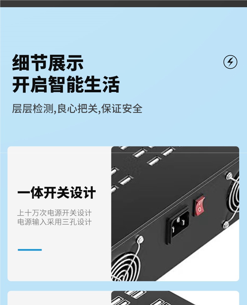 • 3C 인증 단일 행 100포트 800w 2세대 + 안정적인 고속 충전 + MEAN WELL 전원 공급 장치
