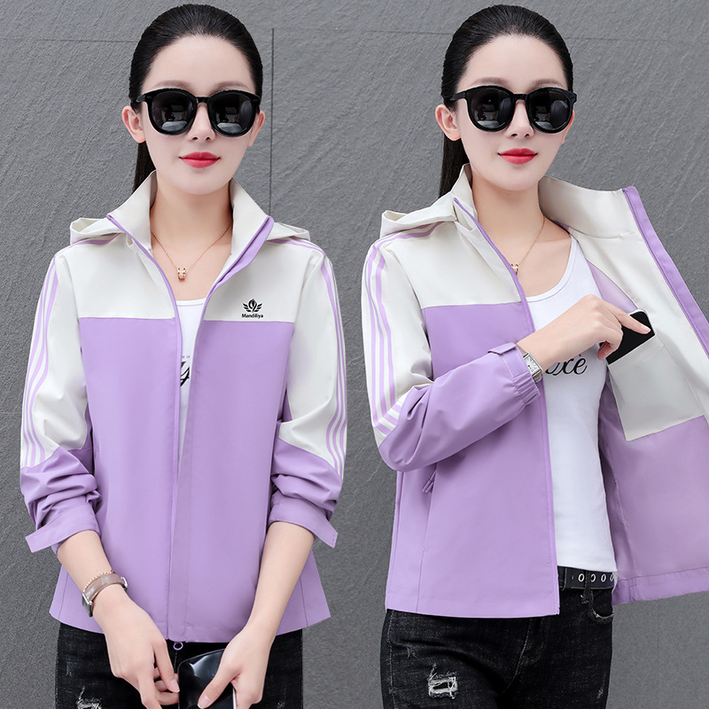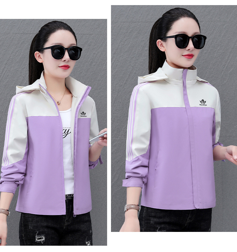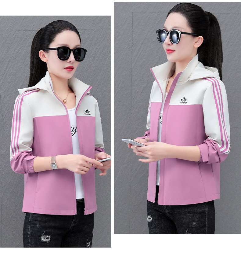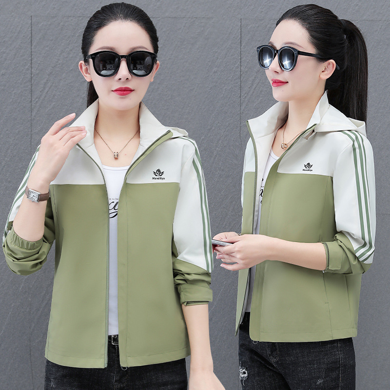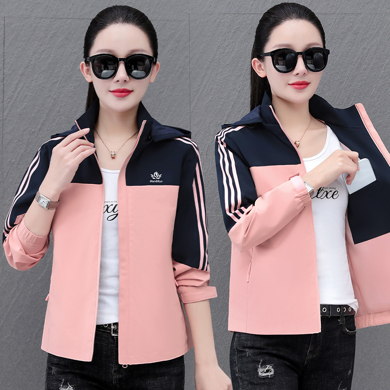여성 자켓 여성 봄, 가을 2025 새로운 캐주얼 스포츠 탈착식 후드 자켓 컬러 블록 루즈 탑스토어 가기