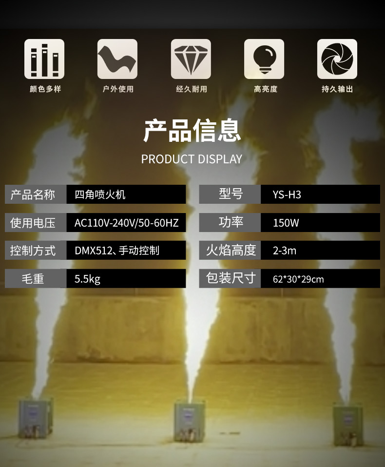 4각 화염 방사기 콘서트 특수 효과 DMX512 원격 제어 화염 기둥 기계 무대 공연 특수 효과 컬러 화염 기계스토어 가기