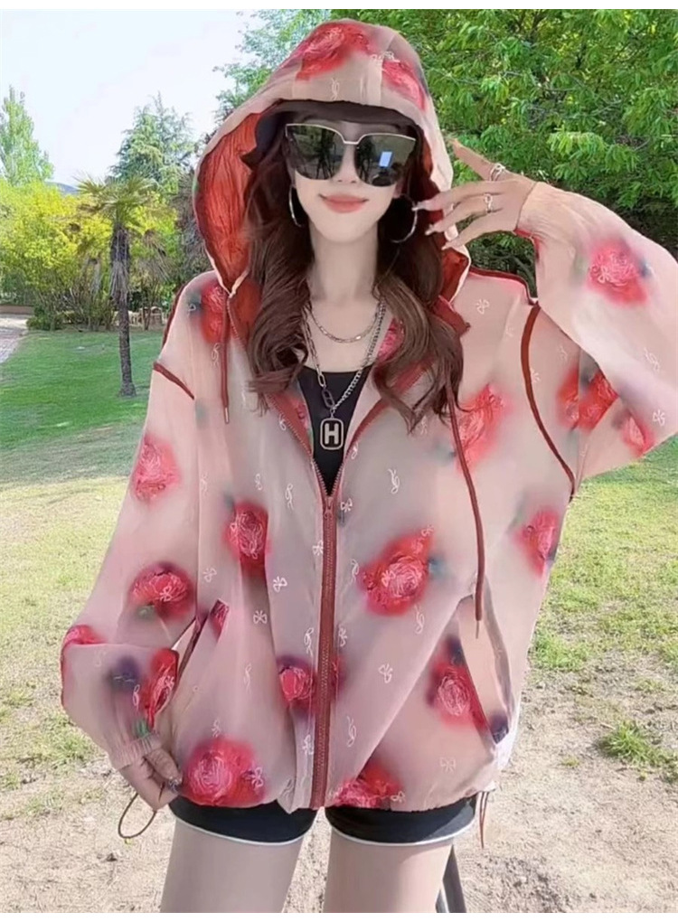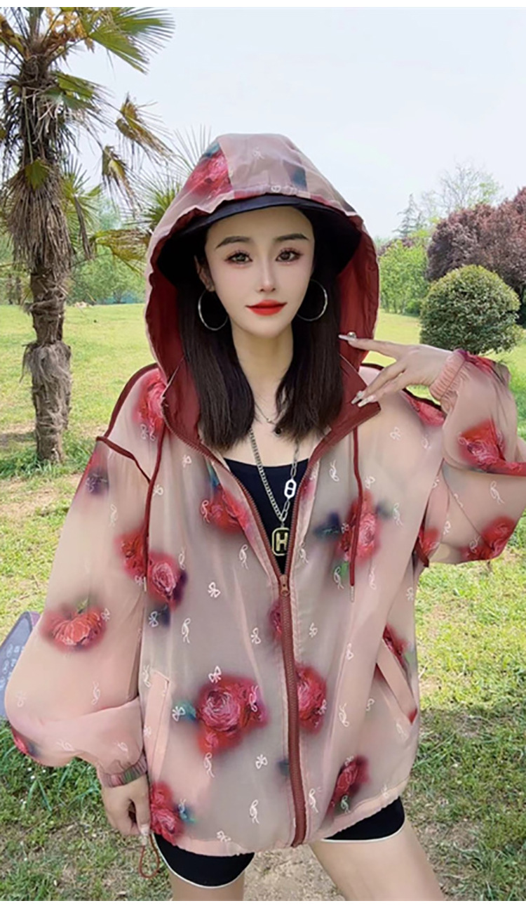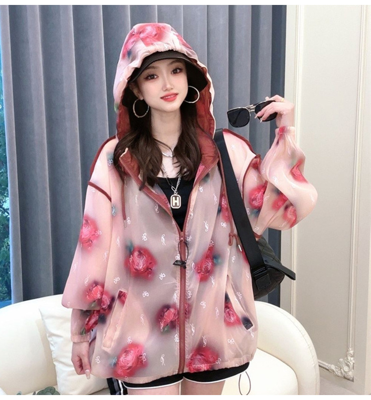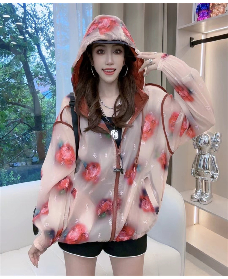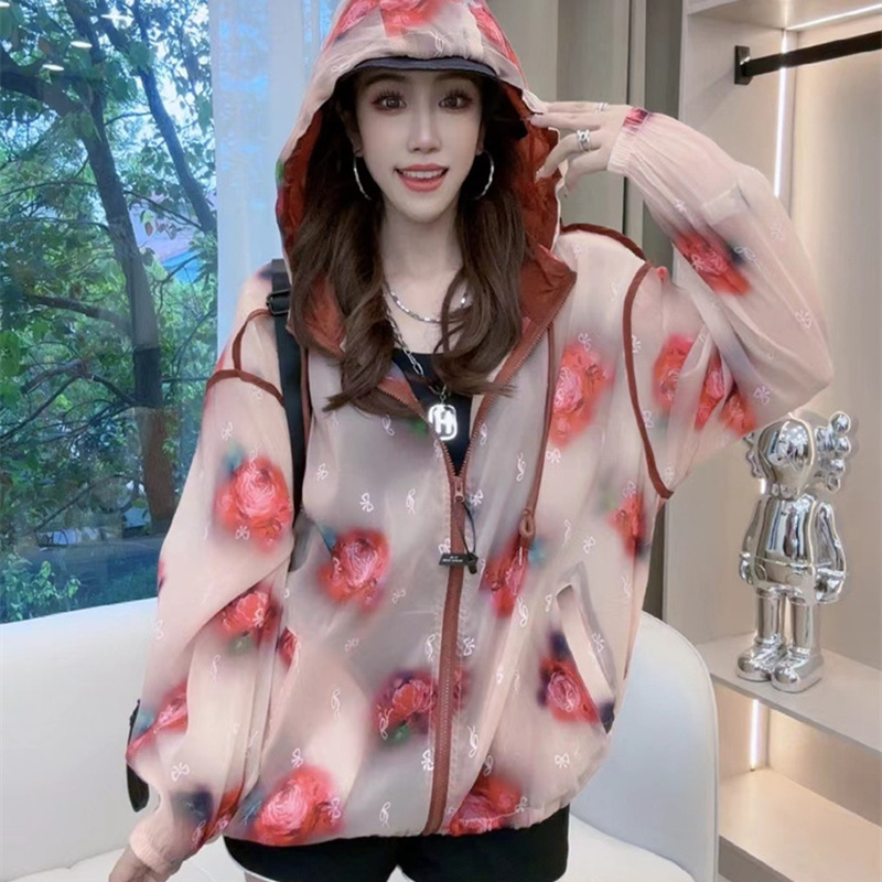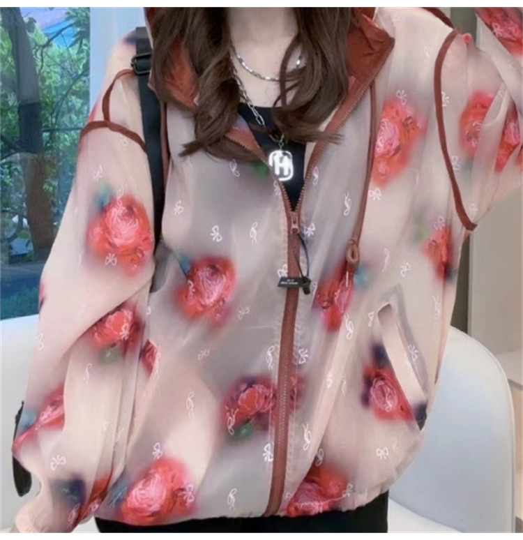 올 매치 얇은 태양 보호 의류 여성의 2025 여름 장미 인쇄 통기성 지퍼 유행 야외 캐주얼 태양 보호 카디건