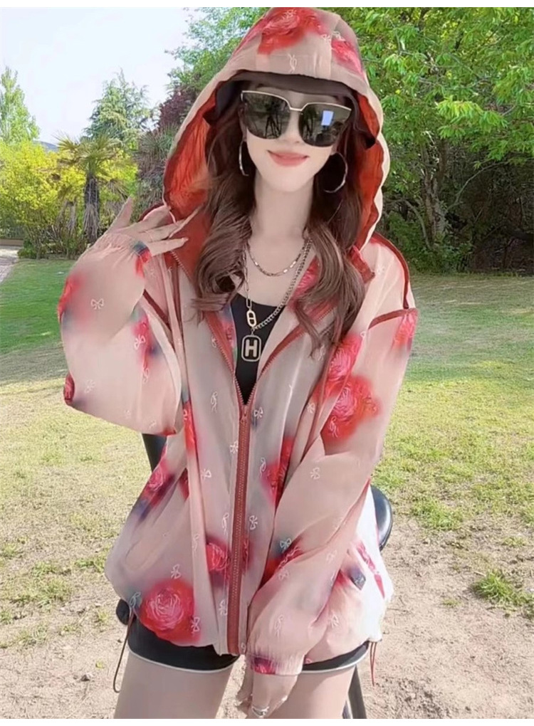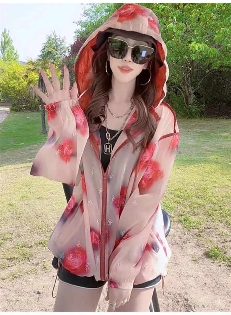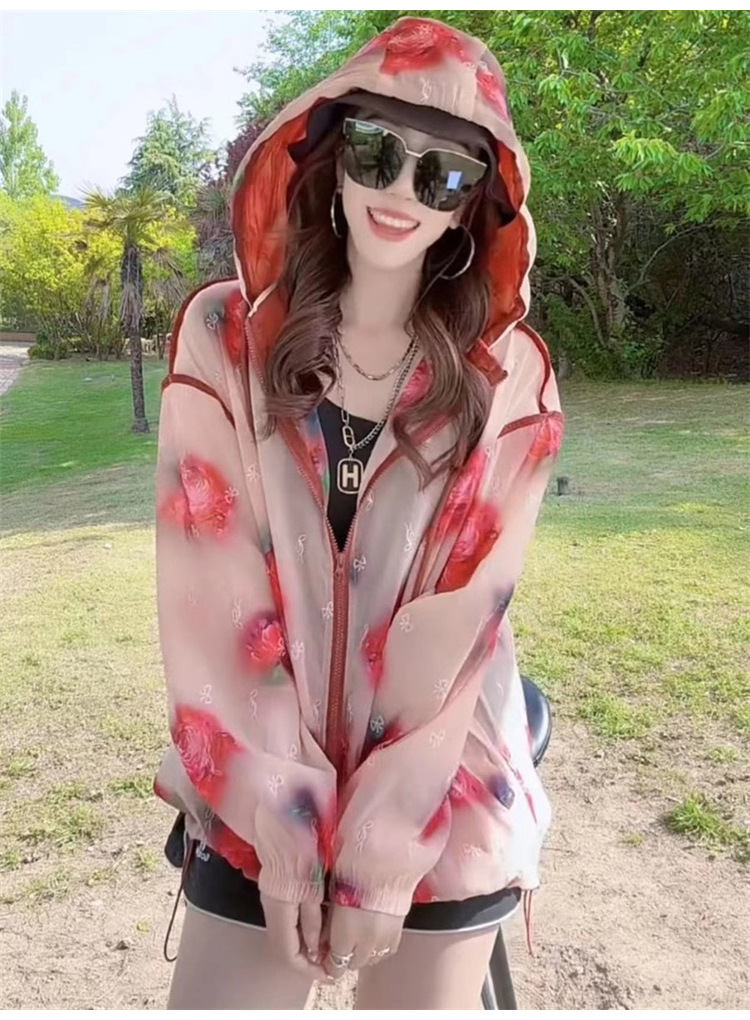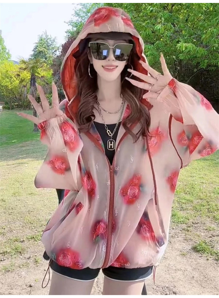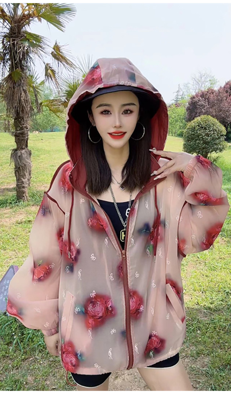올 매치 얇은 태양 보호 의류 여성의 2025 여름 장미 인쇄 통기성 지퍼 유행 야외 캐주얼 태양 보호 카디건