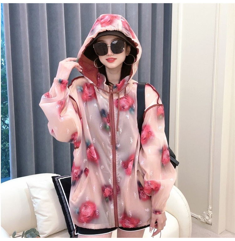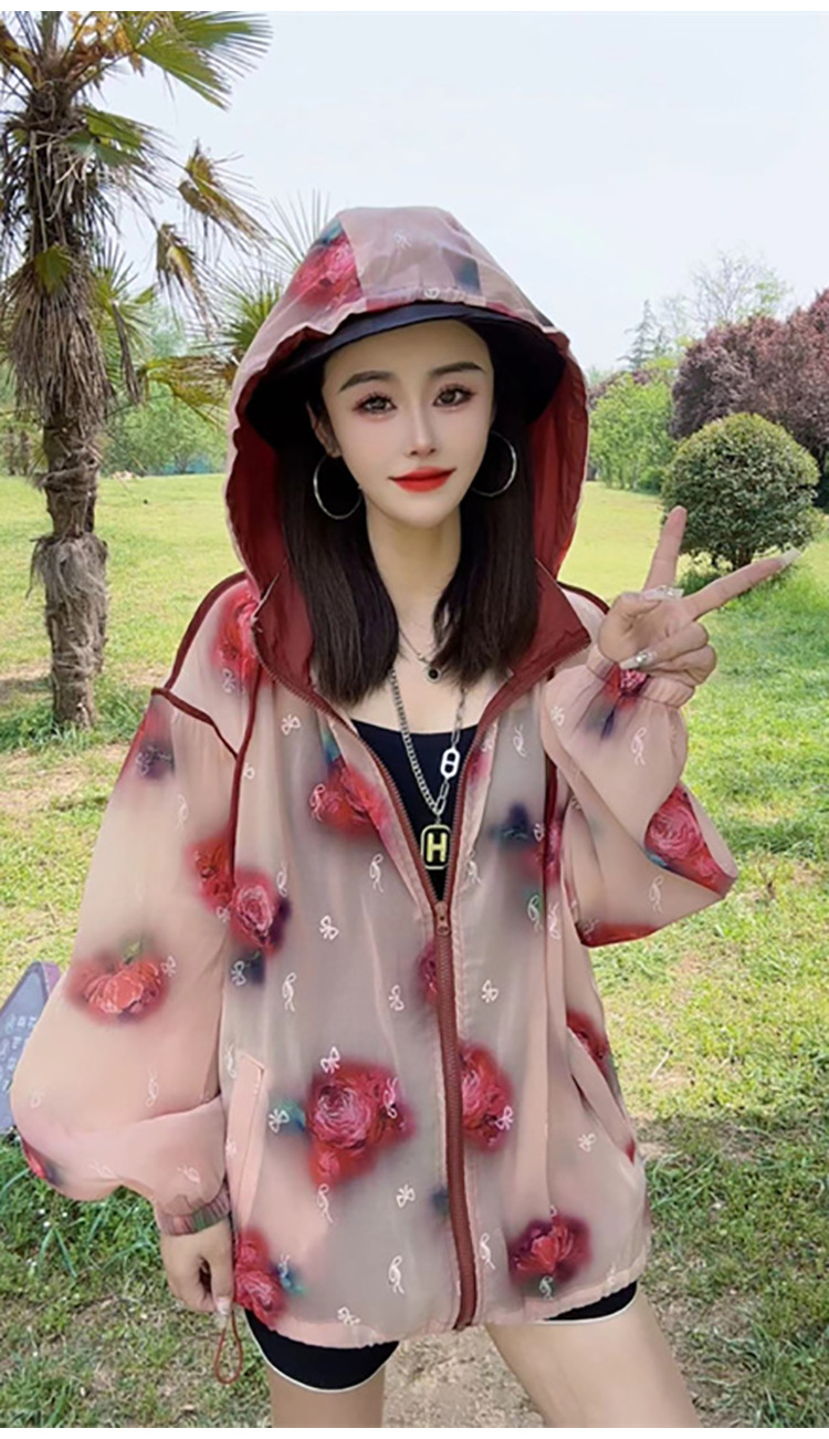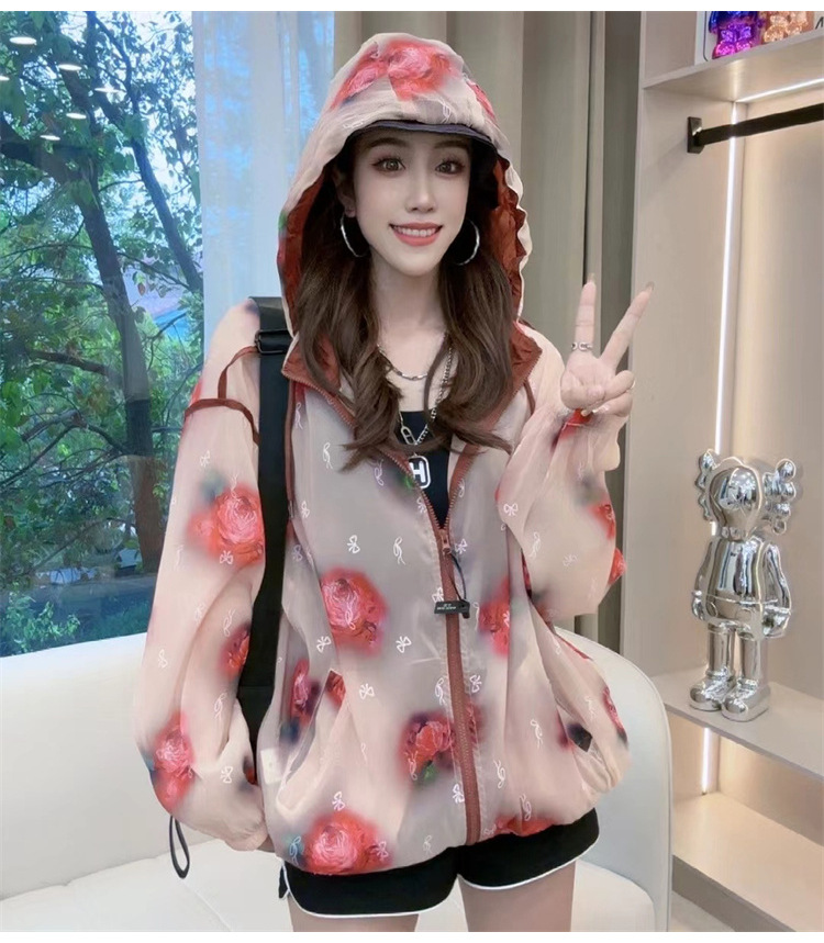 올 매치 얇은 태양 보호 의류 여성의 2025 여름 장미 인쇄 통기성 지퍼 유행 야외 캐주얼 태양 보호 카디건스토어 가기